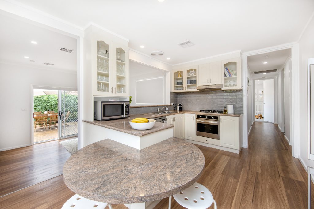 Open plan kitchen with breakfast bar