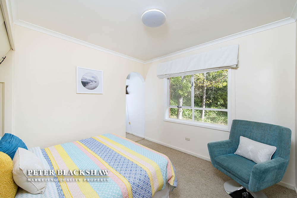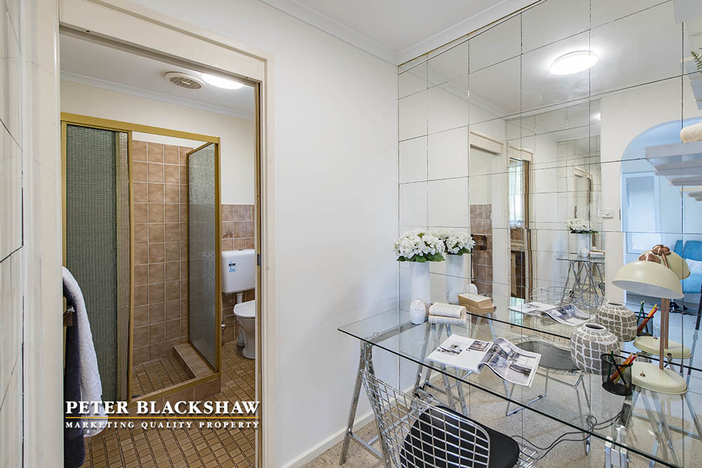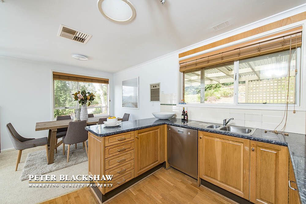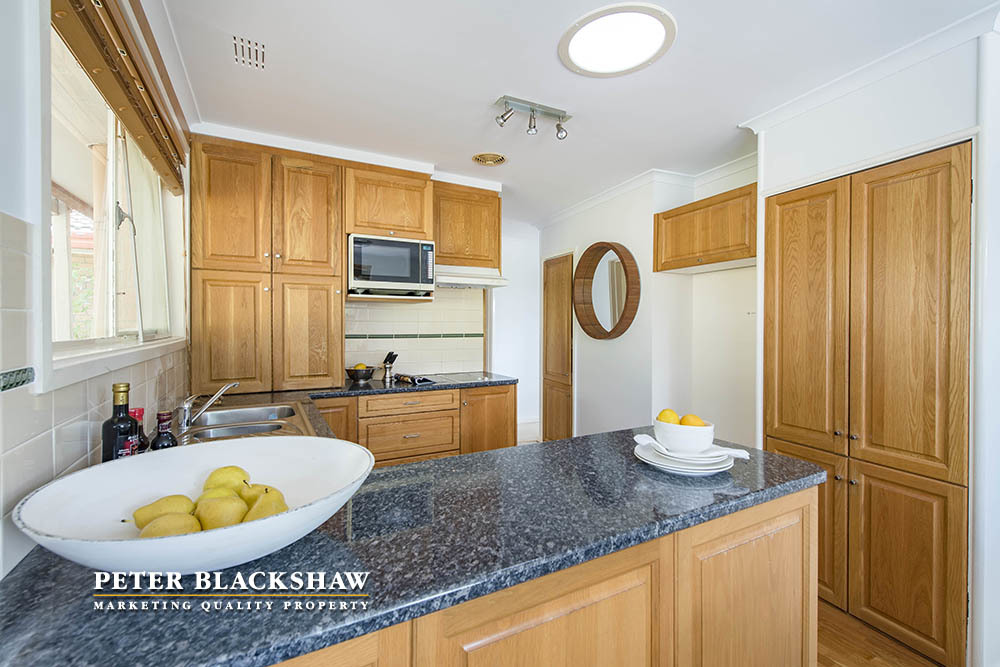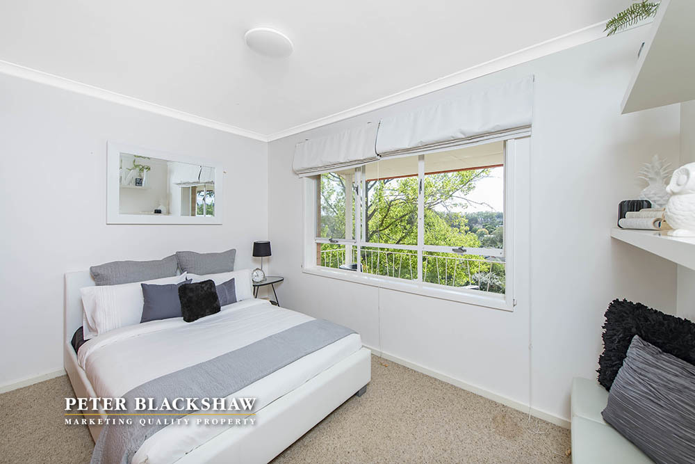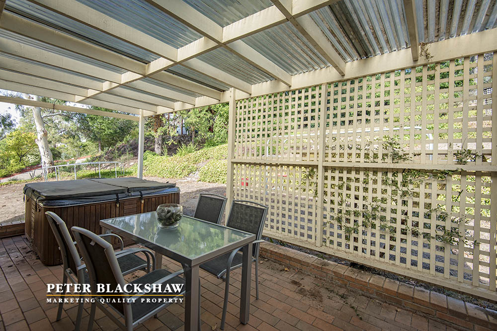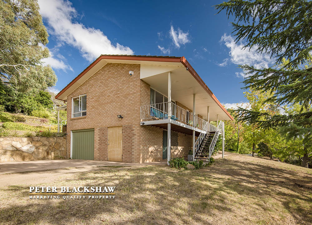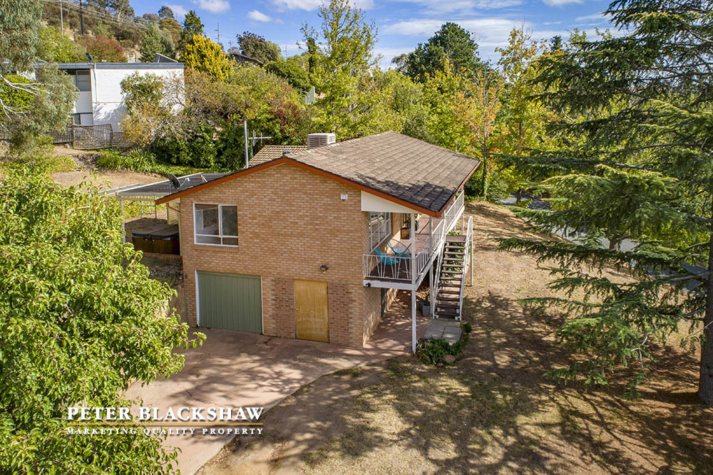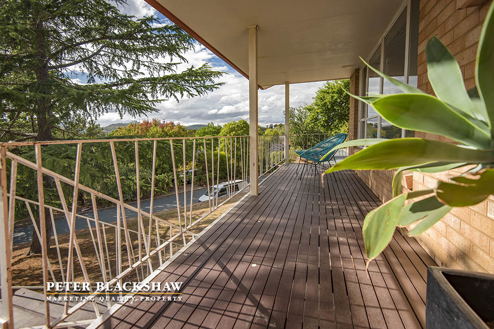 Nestled in a superb elevated position within this exclusive and tightly held pocket of Lyons. This distinctive two-storey brick home is situated on a large 1,263sqm block with sweeping views of Woden Valley including Black Mountain, Red Hill, Mt Mugga Mugga and Isaacs Ridge. The floor plan consists of a spacious open L-shaped lounge dining area that flows seamlessly to an updated kitchen. Accommodation includes three double bedrooms, master with ensuite and walk-in-robe. Downstairs is a large study, plus wine cellar, storage and garaging. Both the large paved area at the rear and the covered north facing balcony, with commanding views, are ideal for outdoor entertaining. This exceptional location is a rare offering. Live in as is or take advantage of the potential to further improve.