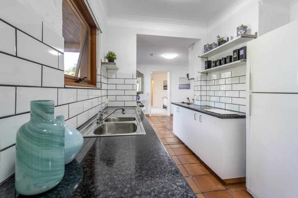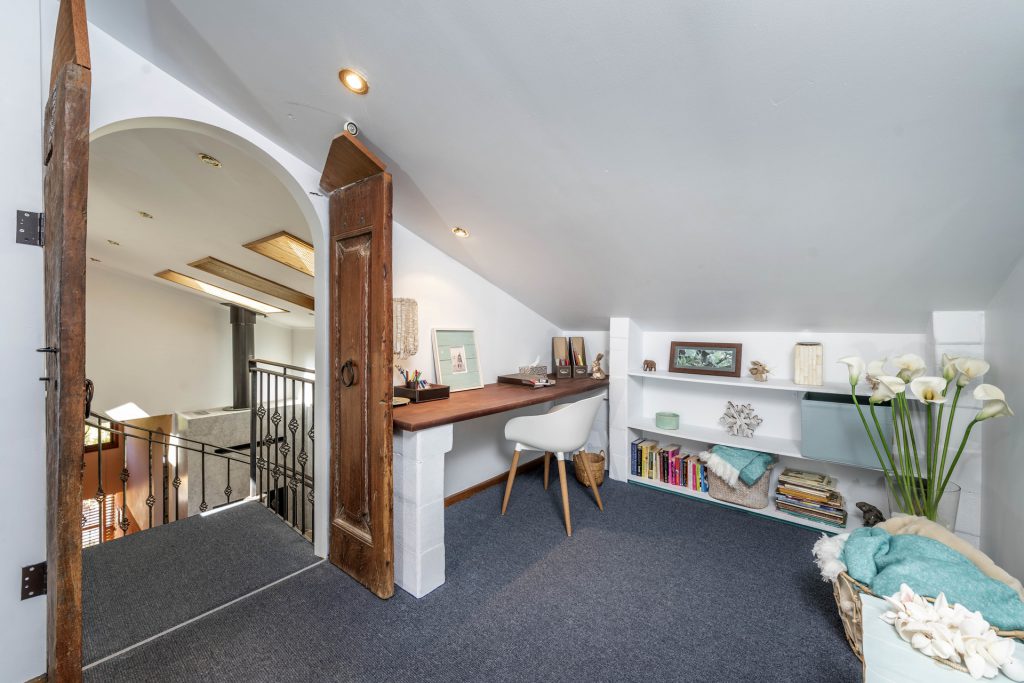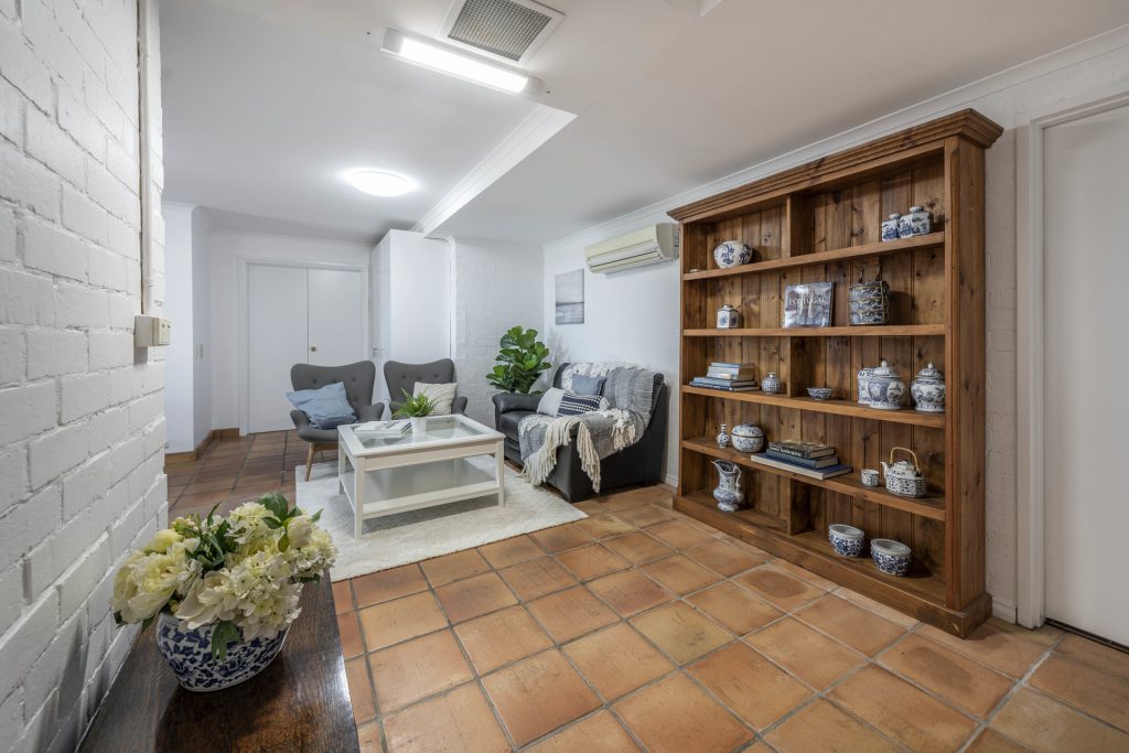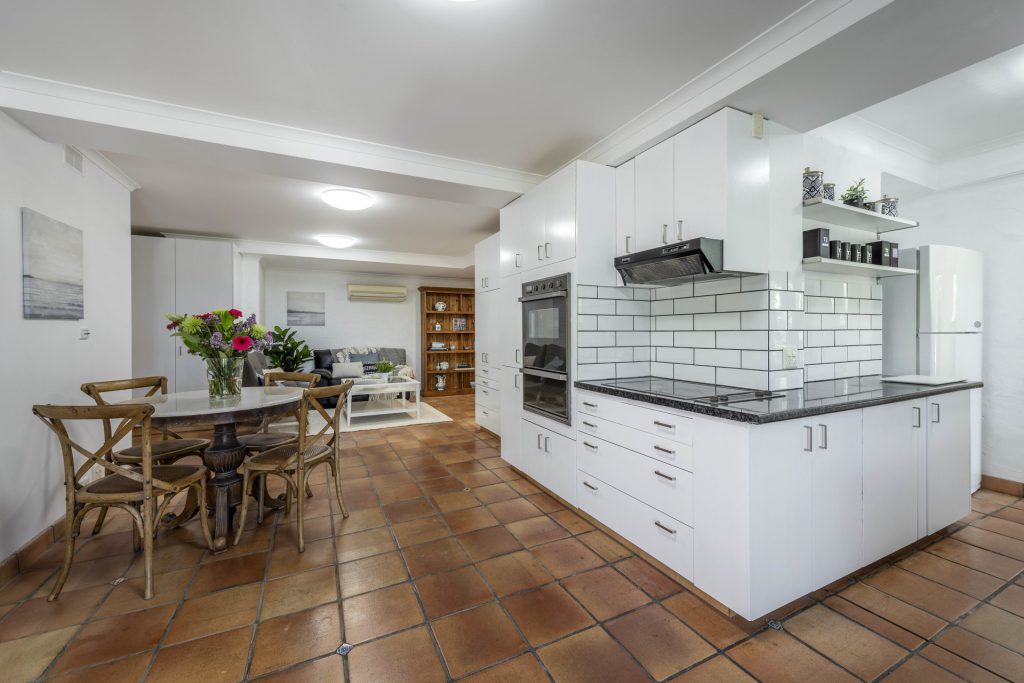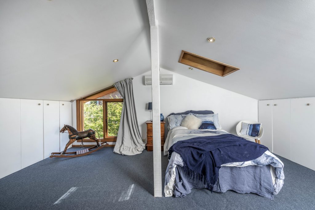 Divided over three levels, the upper floors contain the main residence – four bedrooms, two bathrooms and light-filled living spaces with seamless flow. The lower floor comprises of a one bedroom, two bathroom layout with fully equipped kitchen and free form living areas adaptable to any use.