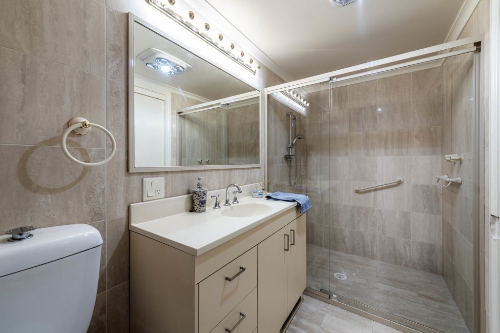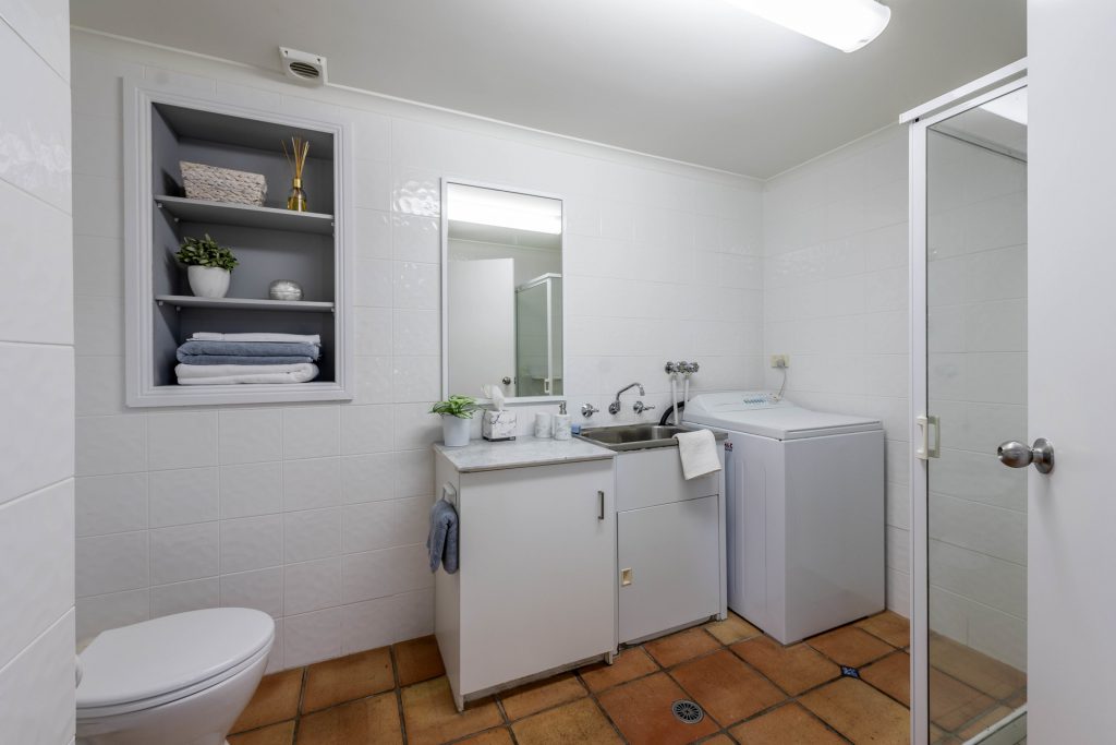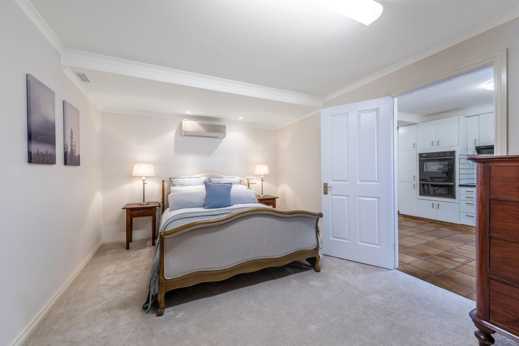 – Downstairs self-contained flat with separate access, two living areas, combined bathroom/laundry, fully equipped kitchen, gym and bedroom with walk-through robe and ensuite