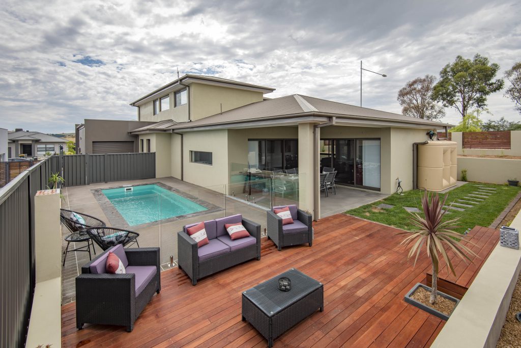 The two storey design consists of both formal and informal living spaces to suit most families. Located at the front of the home is a segregated formal lounge area with a great Northerly aspect. The informal open plan living areas provide an abundance of space to entertain and flows directly to the designer kitchen, finished with top quality appliances, soft close cupboards, stone bench tops and a large breakfast bar / island bench. The kitchen connects seamlessly to the sun drenched family and informal meals area which transition through stacker slider doors to the rear outdoor covered alfresco living that overlooks the stunning in ground pool and boasts views to Black Mountain, the Arboretum and beyond.