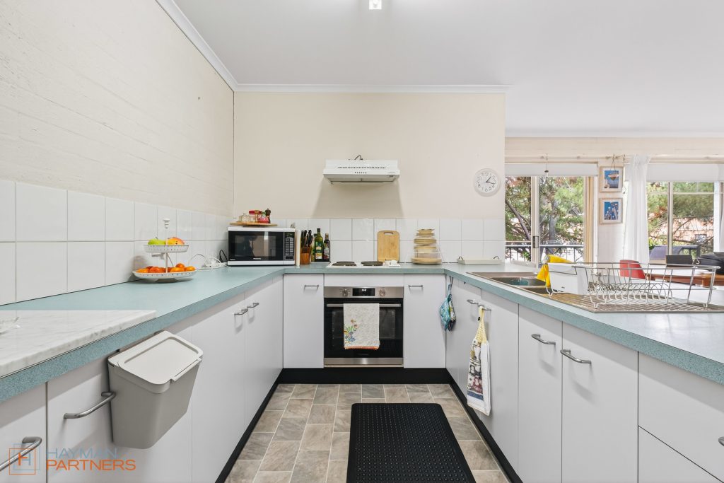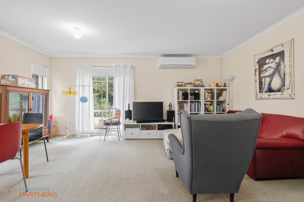 Upon entering, you’ll immediately appreciate the expansive 88m2 of living space that incorporates an open-plan design that seamlessly integrates the living, dining, and kitchen area. The living spaces are flooded in natural light thanks to the northerly aspect and large windows. The kitchen is well-equipped with electric appliances and an abundance of bench space and storage. Also featured is a balcony that offers a great space to sit and relax, with the picturesque outlook of the treetops