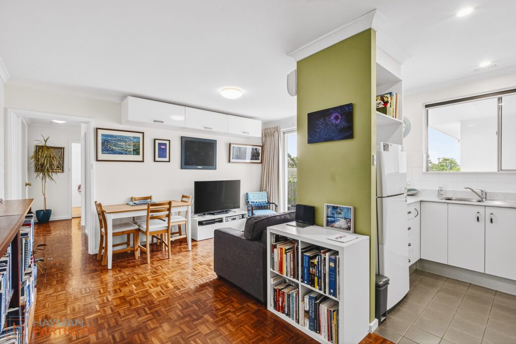 Featuring updated interiors and north-facing living, the apartment has a functional floor plan that incorporates a combined living and dining space. Elevating the entire room is the traditional parquetry timber flooring, a feature rarely seen in apartments. From the living room, you have access to your private balcony with outstanding views of the surrounding treetops of Red Hill.