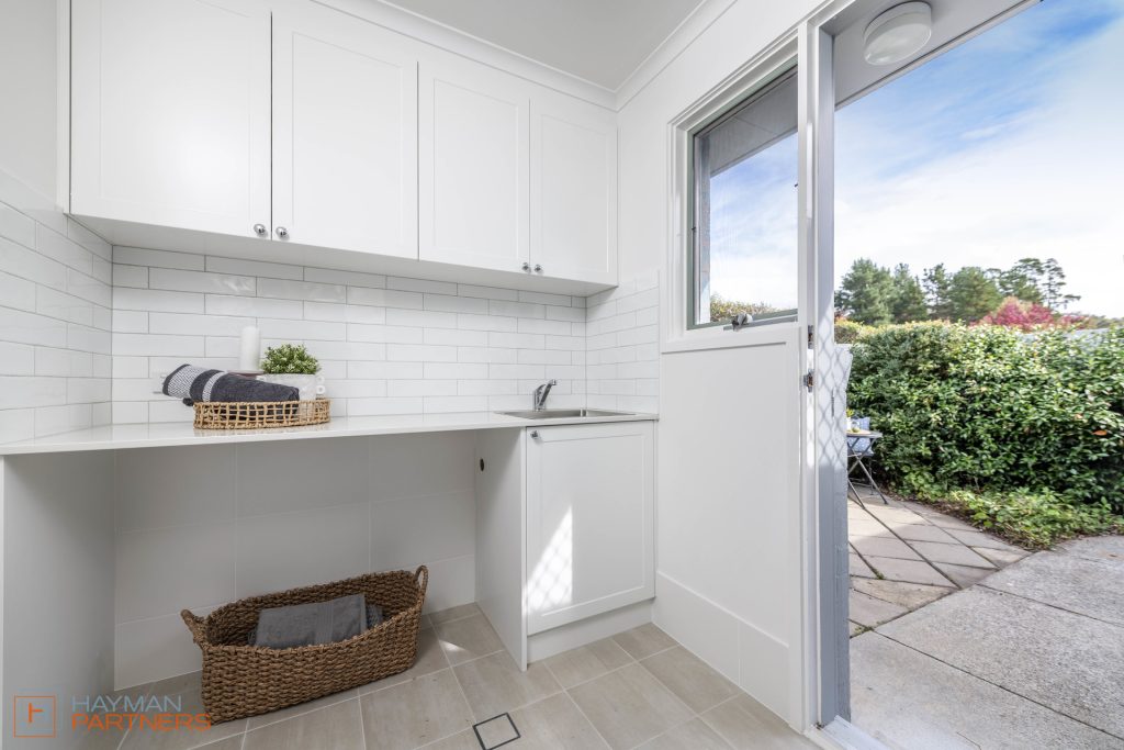• Laundry with stone bench top and ample storage