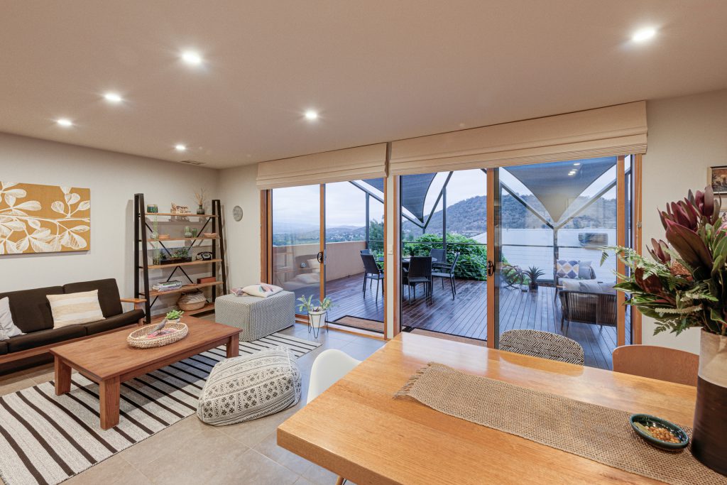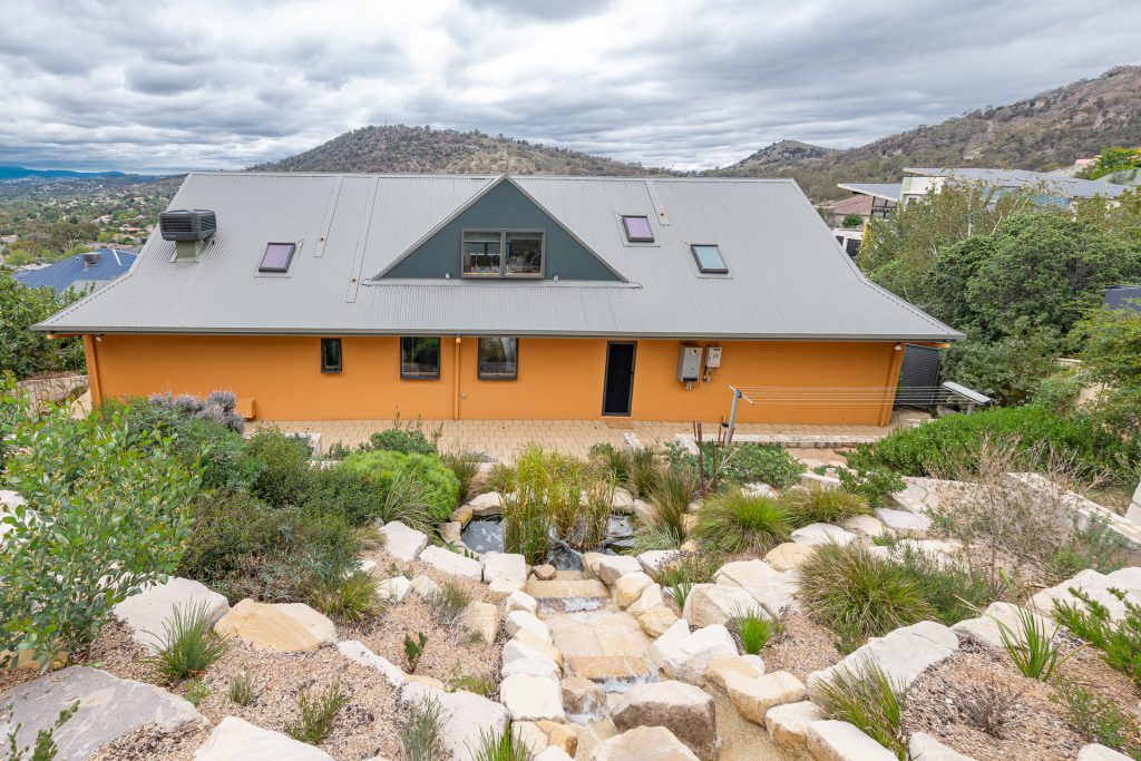 A bespoke family home, perched high on the outskirts of the Rob Roy Range reserve with panoramic views across the Tuggeranong Valley, this architectural residence pays homage to its natural environment while cleverly designed to maximise energy efficiency and space.