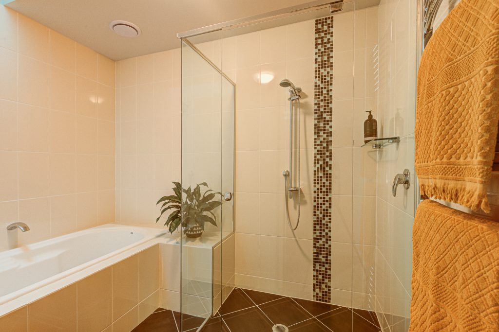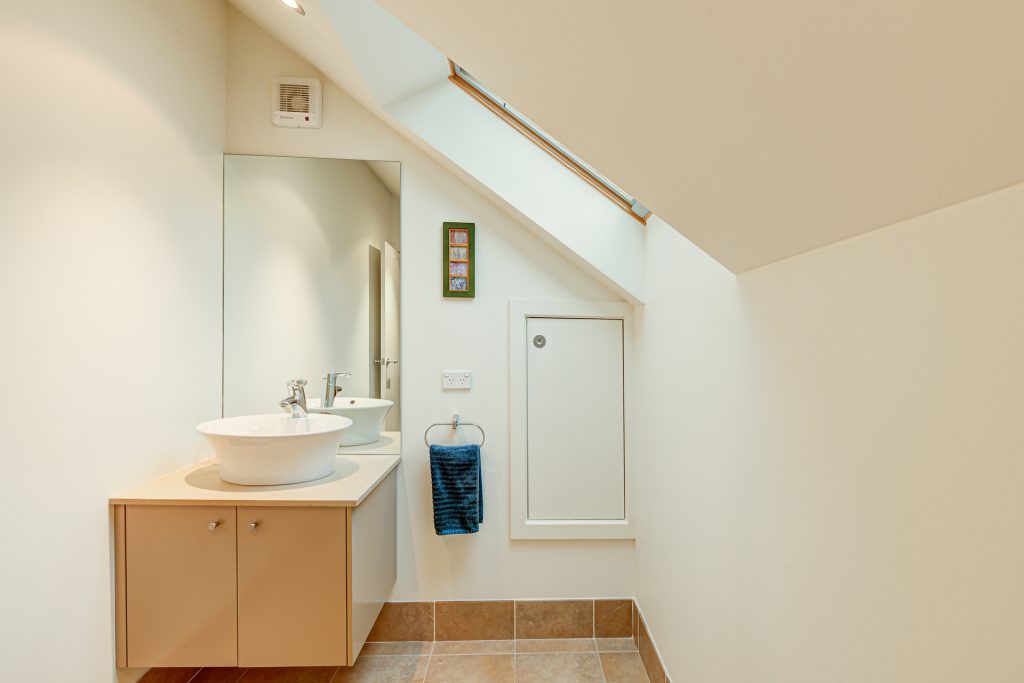 – Well-appointed kitchen with in-built fridge, quality AEG appliances and ample storage space
