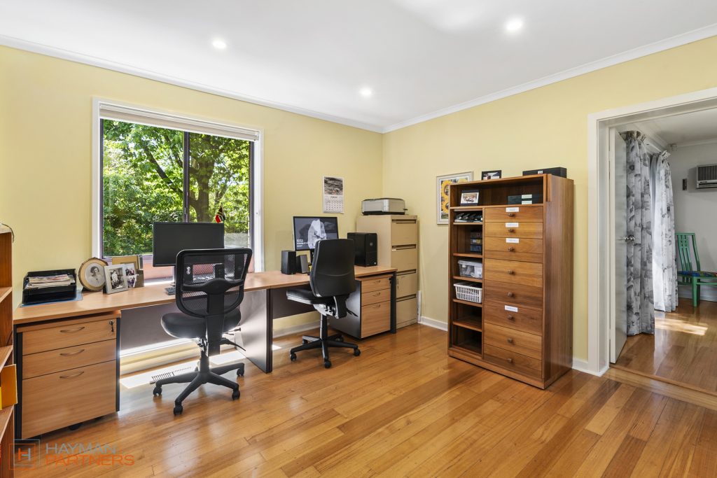 Step inside and let the mesmerising ash timber floors guide you through this impressive home. The spacious living area boasts window framing captivating parkland vistas that will leave you breathless. Whether you’re entertaining guests or simply savouring the view, this space is designed for those who appreciate the finer things in life. The bespoke kitchen, equipped with Miele appliances, Caesar stone benches, and a custom breakfast bar, opens onto a private rear courtyard, ensuring your every need is met.