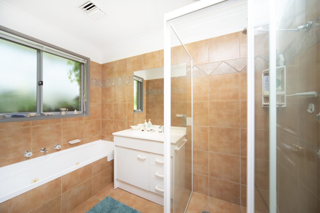 Main bathroom has spa bath and separate shower.