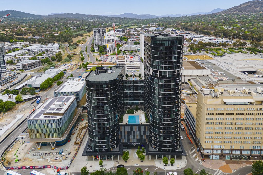 Grand Central Towers is situated right in the middle of Woden, with resort-style amenities, including an infinity pool, gym, private function rooms, outdoor kitchens, and landscaped rooftop gardens.
