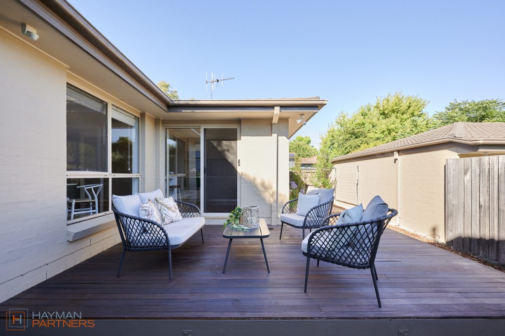 The open plan design features an abundance of windows, taking full advantage of the north easterly aspect to create warm, light filled setting. The modern kitchen has stone benchtops, dishwasher and great storage. The kitchen and living areas overlook and open out to the private rear garden and deck ideal for those that like alfresco entertaining.