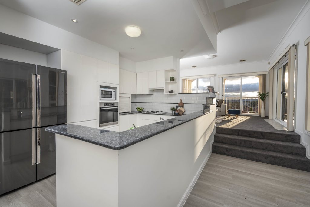 – Chef’s kitchen with quality appliances and ample cupboard space