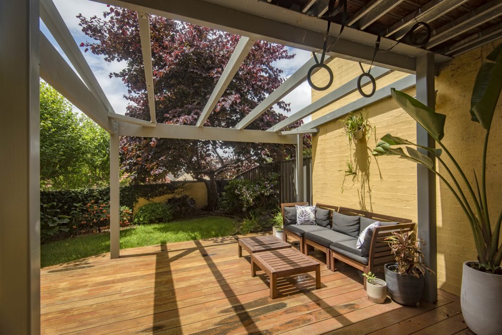 – Landscaped and easy-to-maintain outdoor area with spacious deck and pergola