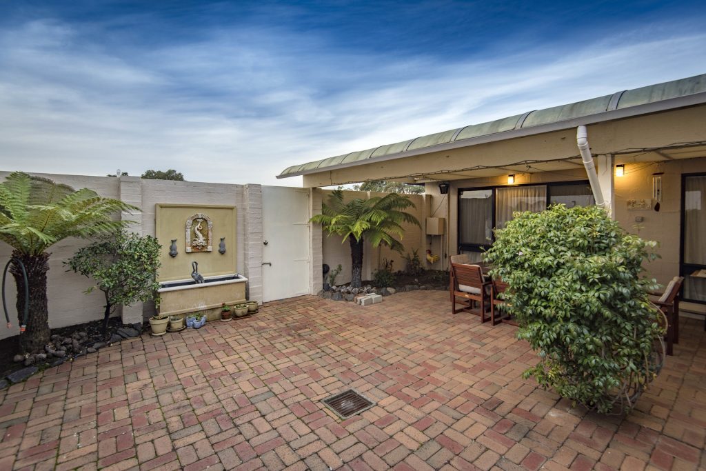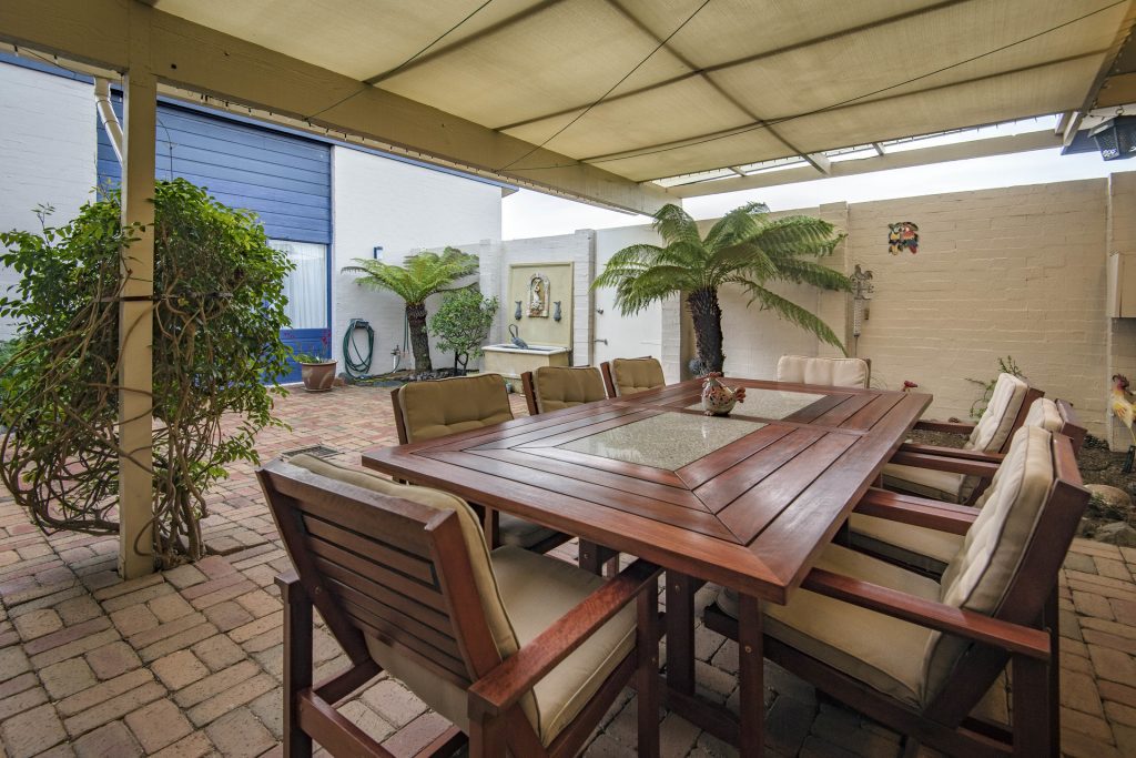 – Covered alfresco entertaining area with water feature (currently not plugged in)