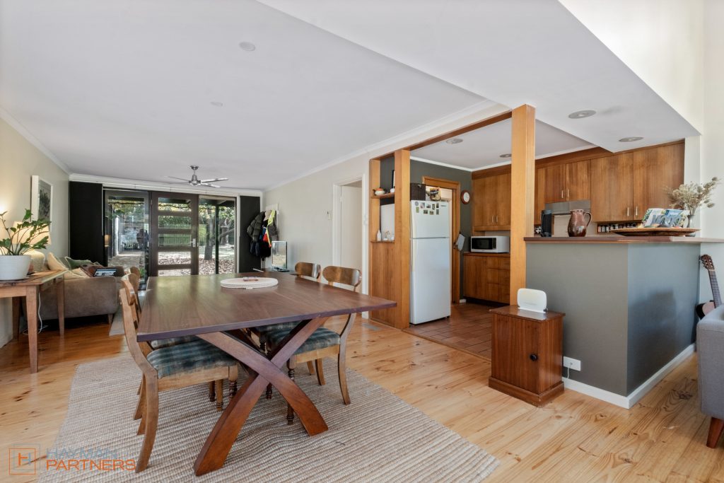 Superbly positioned in the Radburn estate of Curtin is this modern home which has been tastefully extended and renovated to blend into the natural landscape in keeping with the Radburn design. Fronting parkland this private single level, contemporary home has been designed to suit the modern lifestyle. Boasting large double glazed windows throughout the spacious open plan living areas that capture the expanse of the beautiful surrounding parkland. The meals area connects seamlessly to both the updated kitchen with bespoke servery and the private outdoor entertaining deck. Accommodation is provided by four bedrooms, the large master with modern ensuite bathroom and high ceilings. Other features include designer renovated bathroom, private outdoor deck and ducted gas heating. Stroll to local schools, parkland, playing fields without crossing a road and only a minute walk to Curtin shops.