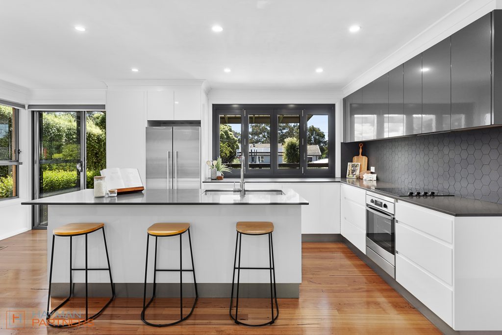 The open plan living areas wrap around the modern kitchen, creating a space that encourages creativity and innovation. The large windows provide a stunning view of the sundrenched entertaining deck and is patiently awaiting your friendly outdoor gatherings.