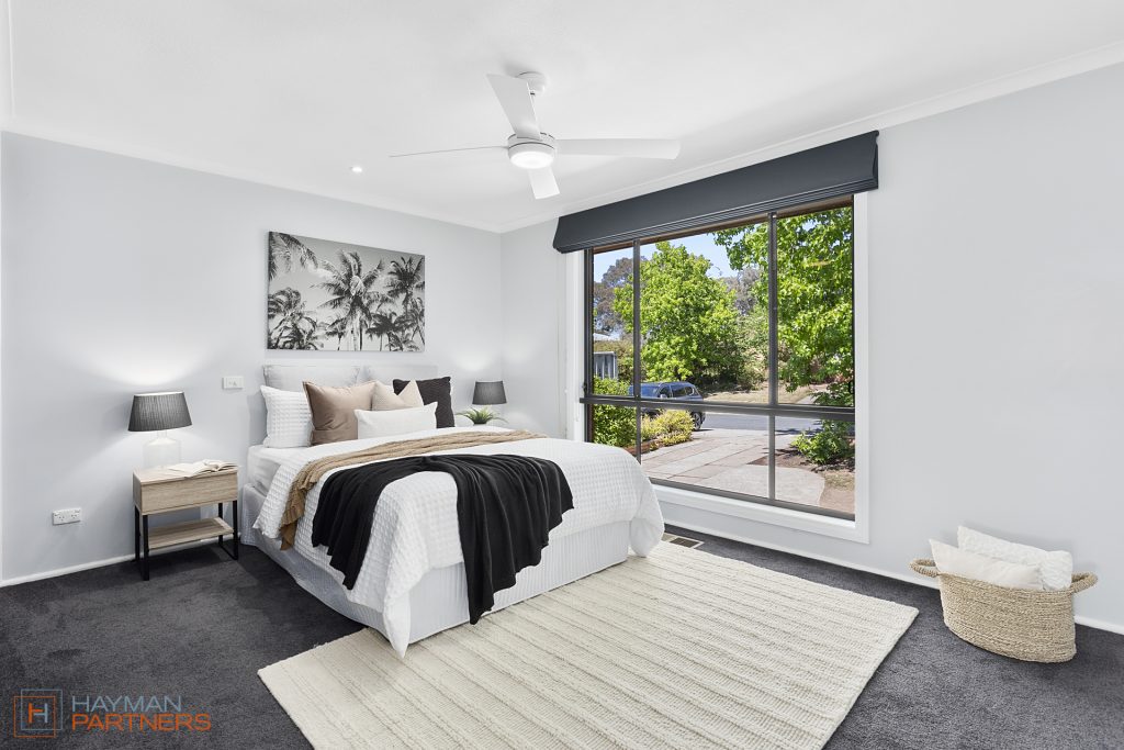 Three bedrooms, two with built-in robes, offer comfort and a tranquil space to retire to. The modern bathroom, accompanied by ducted reverse cycle heating and cooling throughout, ensures that the house provides a year-round refuge from Canberra’s unpredictable elements outside.