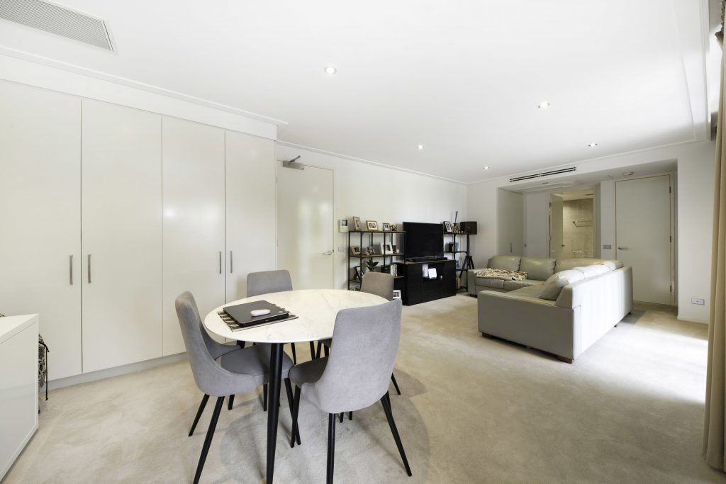 The open plan design is truly impressive for a one-bedroom apartment. The generous living area connects to the dining area and well-appointed modern kitchen with stone bench tops, stainless steel oven and storage. Accommodation is provided by one bedroom with built-in-robes and a large bathroom.