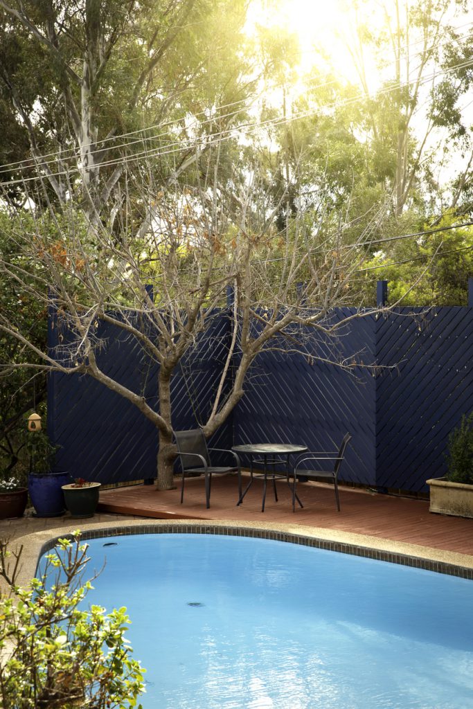 Paved area around stunning pool with deck area / BBQ and built-in seats