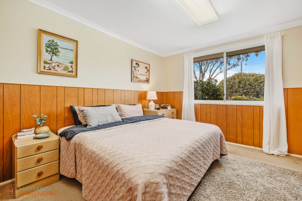 To the left of the entry, the home features four well-proportioned bedrooms, all positioned conveniently near the family bathroom, complete with both a shower and a bath. The master bedroom is a standout, with built in storage and dedicated vanity area, adding extra convenience and space.