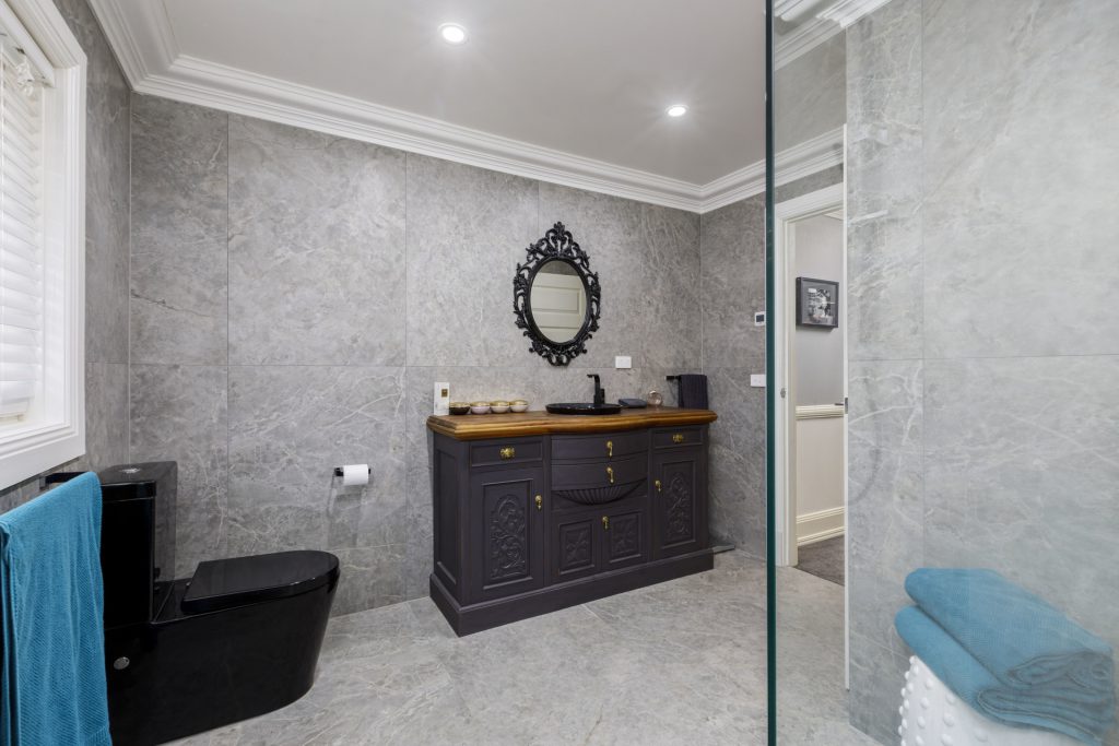 Upstairs reveals several luxury touches including a stairway guarded by a bespoke wrought iron railing and highlighted by an Italian designer chandelier. The lux main bedroom will take your breath away with it’s large walk in dressing room and five star ensuite bathroom. Bedroom two and three are well sized, one offering a walk in robe and one a built in. The family bathroom continues the elegant them providing wonderful amenities.