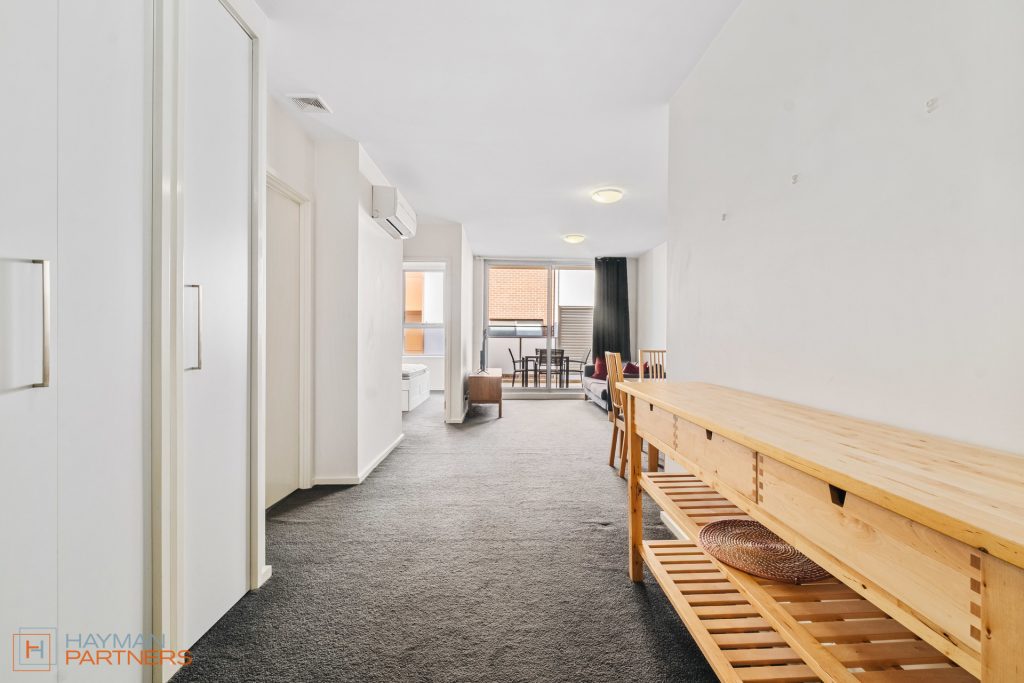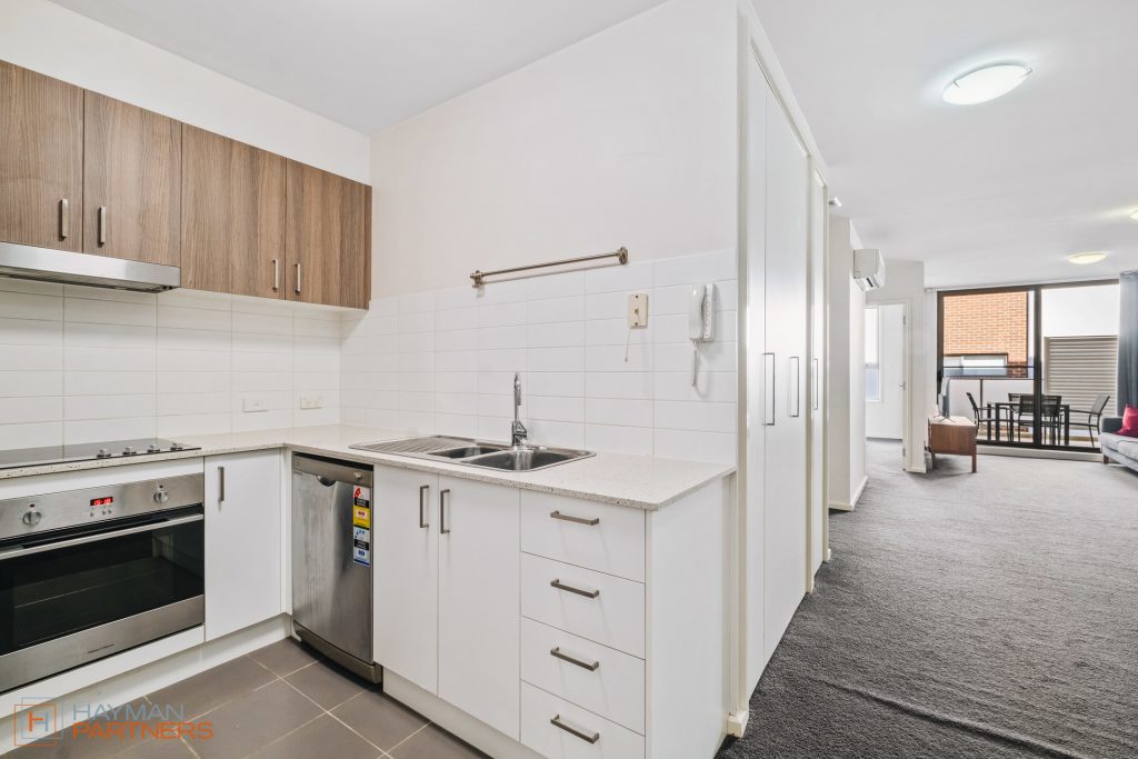 Located on the first floor of the Fusion complex this one-bedroom apartment has a generously sized kitchen featuring stainless steel appliances with ample cupboard and bench space. Walking past the kitchen and generous storage you enter your combined living and dining space with access to the balcony, boasting the perfect space to spend time with family and friends. Inside the bedroom you’ll find spacious walk-through wardrobe with access to the main bathroom for ensuite style living. The apartment includes reverse cycle air conditioning to keep you comfortable all year round, secure allocated parking with a storage cage and lift access.