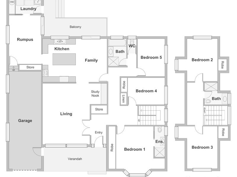 * Two level 5 bedroom, 3 bathroom home of 232 m2 (approx 25 sqs)