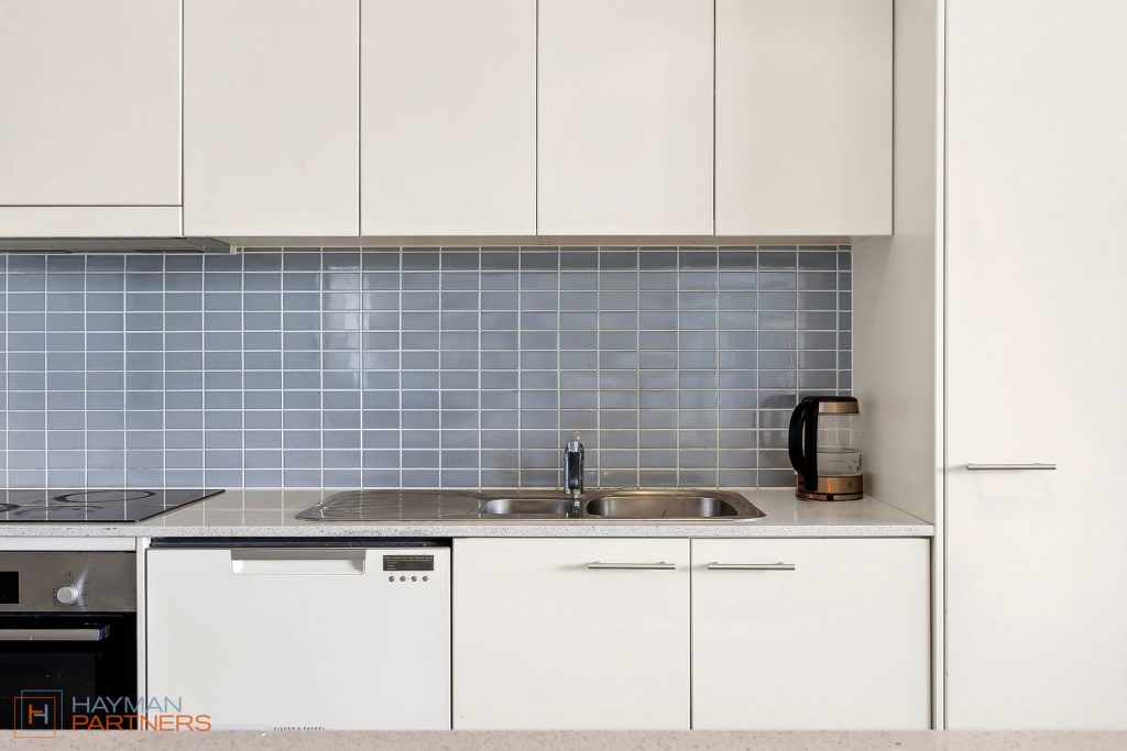 The spacious kitchen offers plenty of bench space and additional storage thanks to the overhead cupboards. Also featured are stone benchtops, dual sinks, stainless-steel appliances, and a tiled splashback. Flowing from the kitchen is an open plan living and dining with plenty of sunlight from the floor-to ceiling windows. For added convenience, a cozy study desk is included separate from the study room. Off the dining room is a north facing balcony ideal for relaxing in the fresh air.