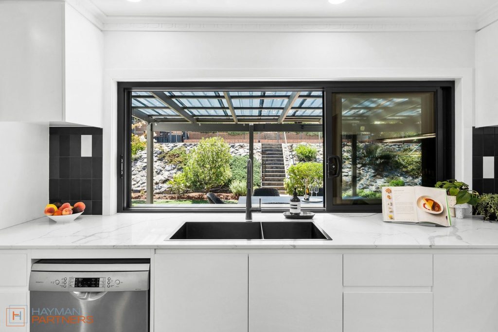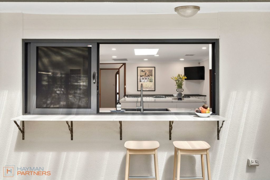 • Kitchen servery with new double-glazed window and Crimsafe mesh