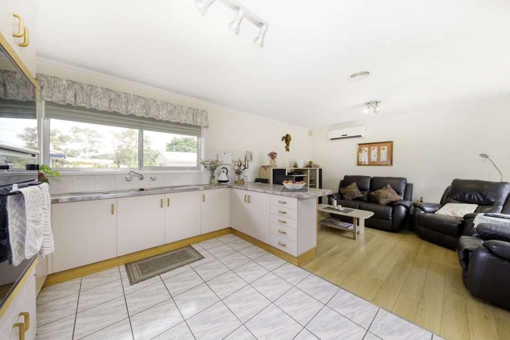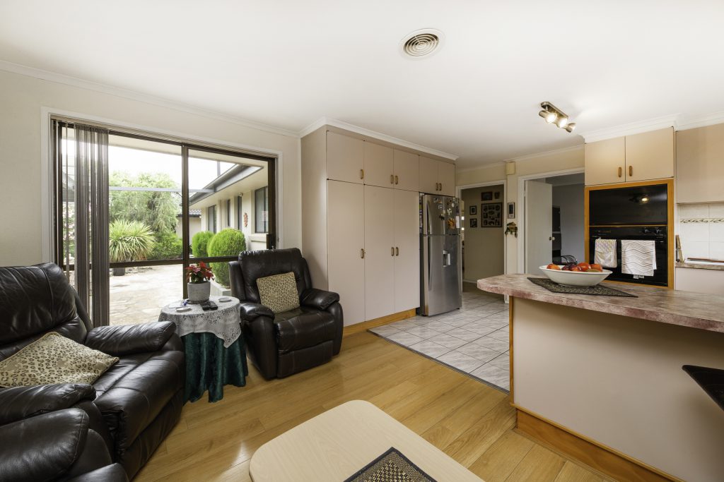 Accommodation is provided by three generous bedrooms supported by a modern bathroom and separate toilet. The master bedroom has a renovated ensuite. The grounds of this generous block have been thoughtfully landscaped over the years, and now support mature plants that will be easy-care yet provide a beautiful shady spot from which to watch the kids and pets play in the fully-enclosed yard.