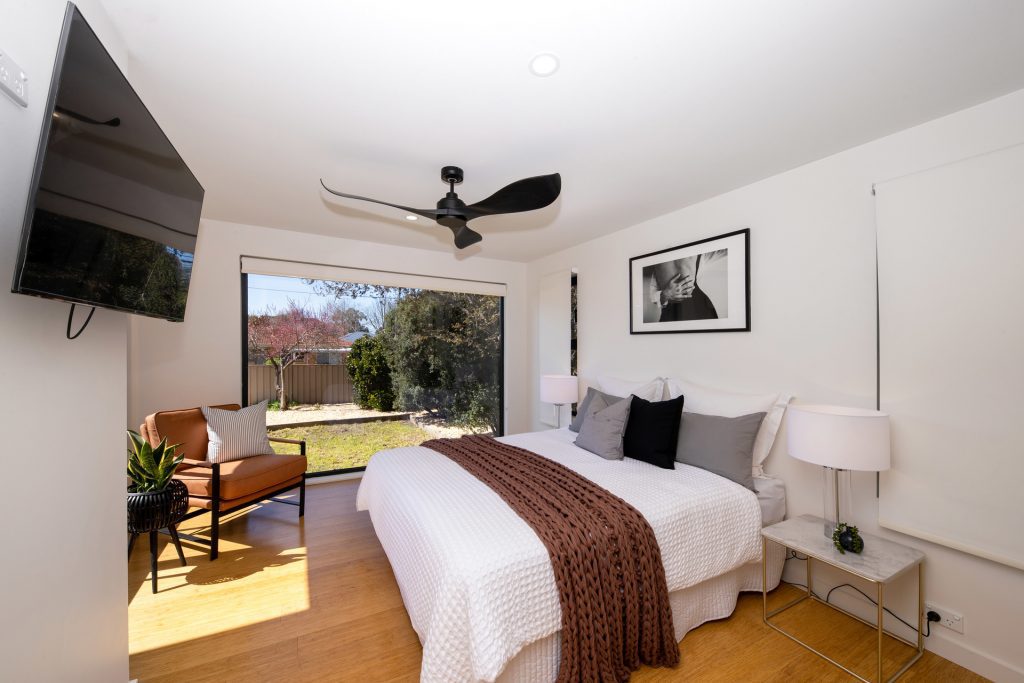 Showcasing a stunning master bedroom suite extension, expertly crafted to welcome abundant natural light, the single level property features quality selections and versatile accommodation to ensure a comfortable and convenient lifestyle.