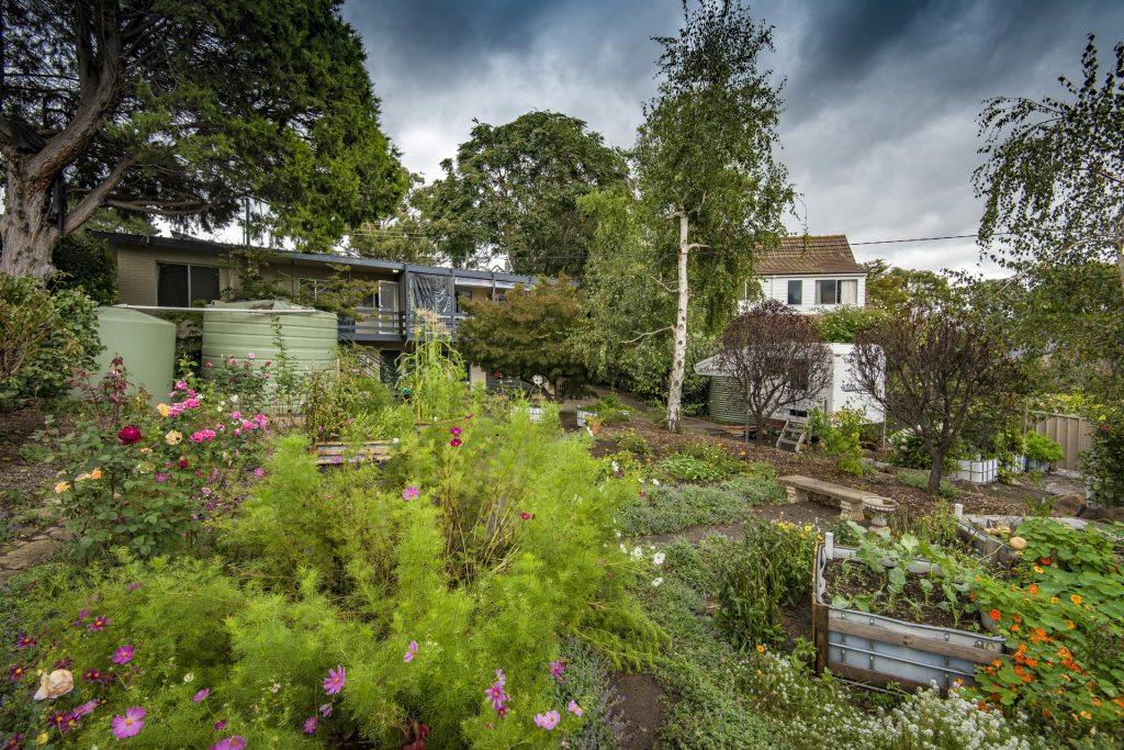 On the lower level, the property boasts impressive storage capacity, garage, laundry, and a superb sustainable garden, incorporating fruit trees, wicking beds and extensive rainwater tanks.