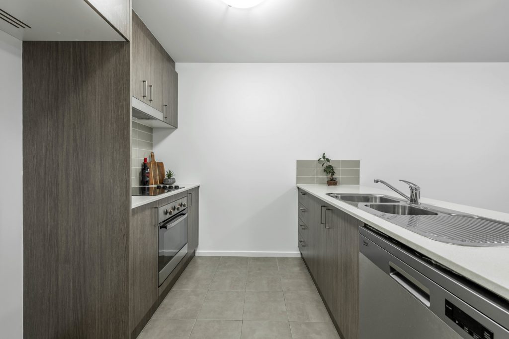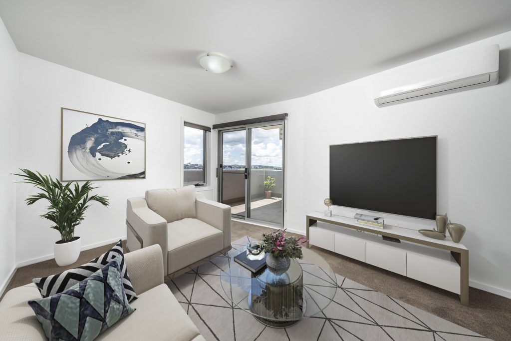 The beautiful modern kitchen boasts stainless steel appliances and plenty of room for storage. The kitchen island bench also services as a breakfast bar. The functional open plan of dining and living allows entertainment to flow out to the private balcony. Through the glass sliding door, the morning sun drenches the apartment and boasts beautiful views out to telstra tower, enough room for outdoor dining, making this space perfect for entertaining.