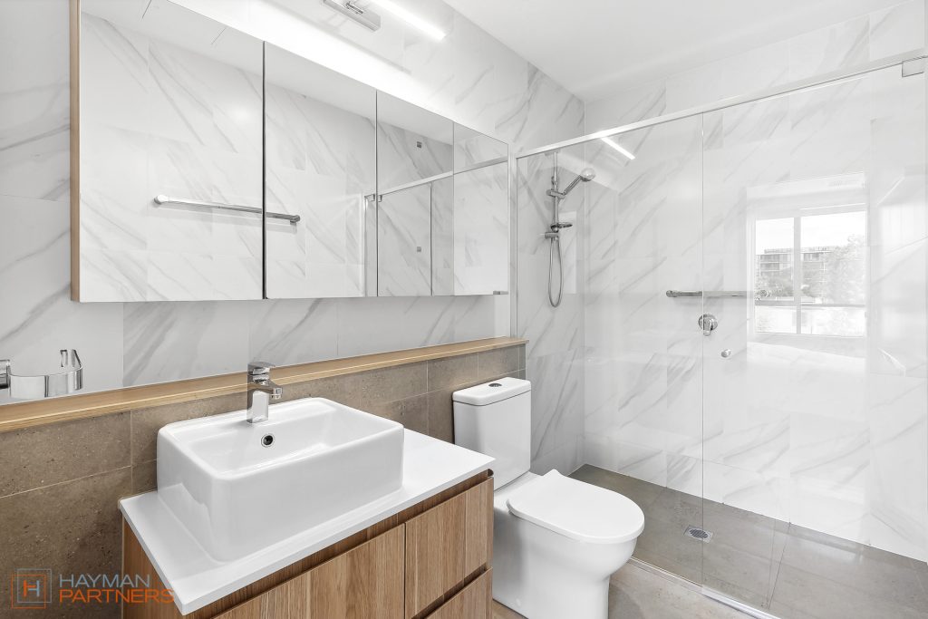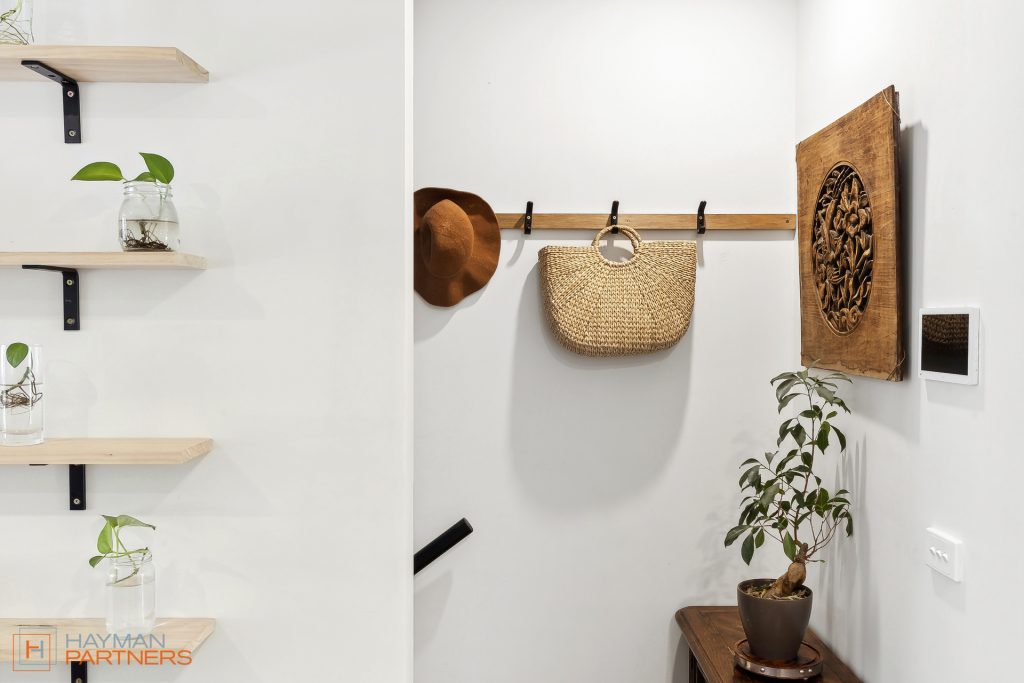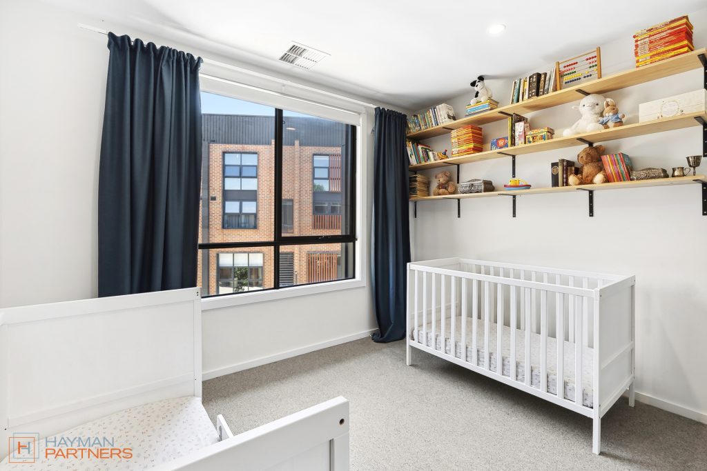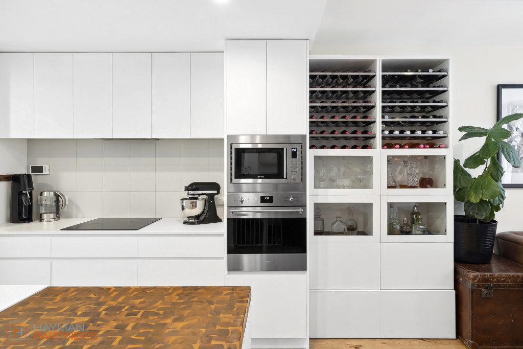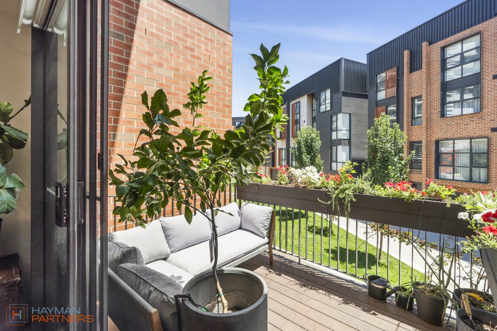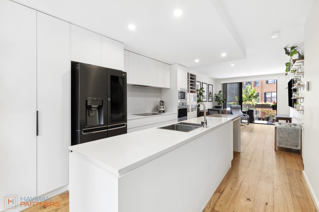 Setting the standard for modern living, townhouse 135 at “The Grounds” offers an open plan design with living and meals areas positioned either side of the well-appointed kitchen. The elegant kitchen incorporates 20mm Caesarstone benchtops with custom wood chopping block, Fisher & Paykel 600mm induction cooktop, pyrolytic oven and microwave, integrated dishwasher and plumbed fridge cavity; A culinary playground for you to whip up tasty delights. Flowing out from the living areas is the elevated, north facing balcony with irrigated, custom planter box creating a green outlook with potential to grow a range of herbs to stock the kitchen.