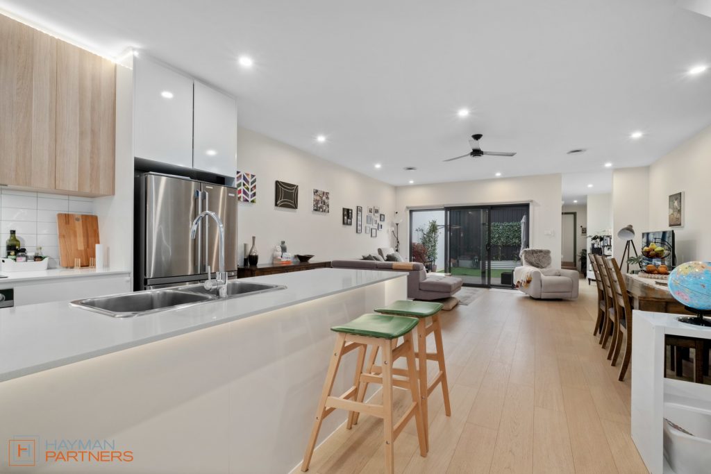 – Open plan living, dining and kitchen area