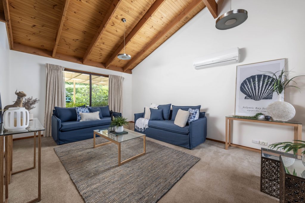 1. Integration of the living spaces with the spacious and private garden through sliding doors at the front and back of the house.