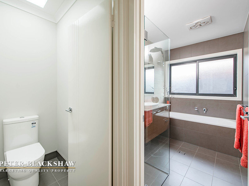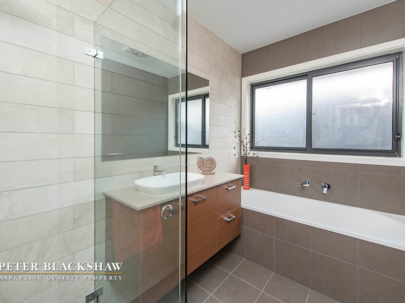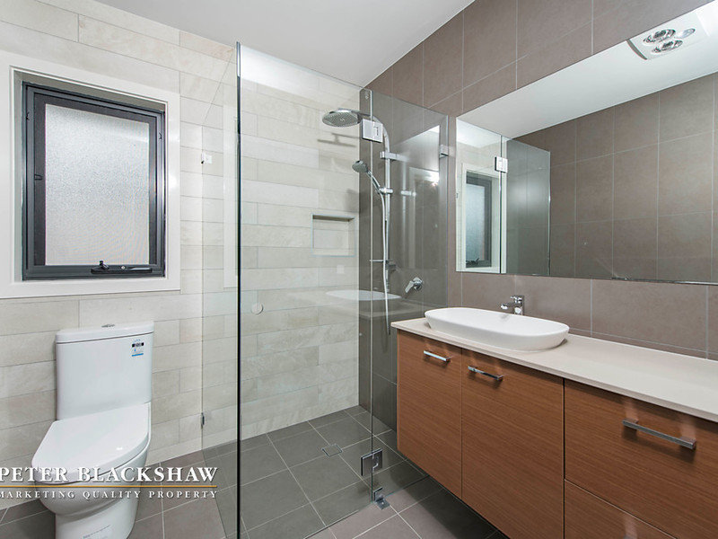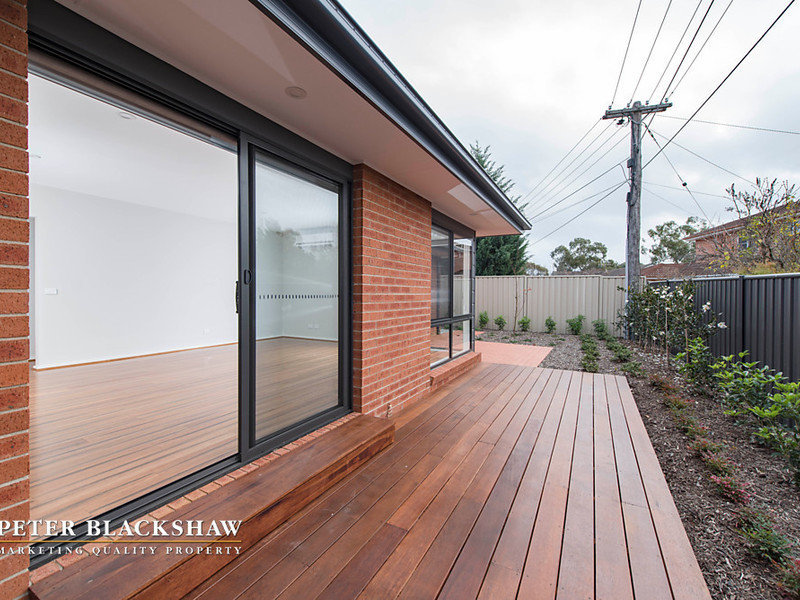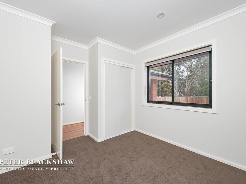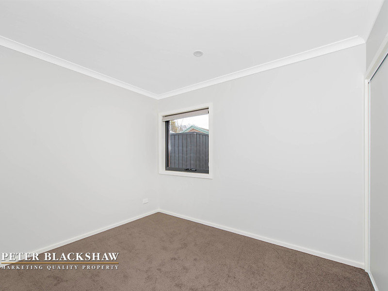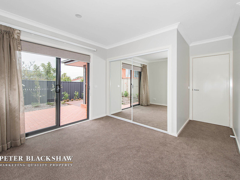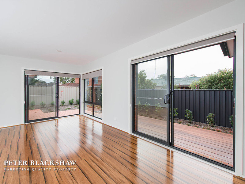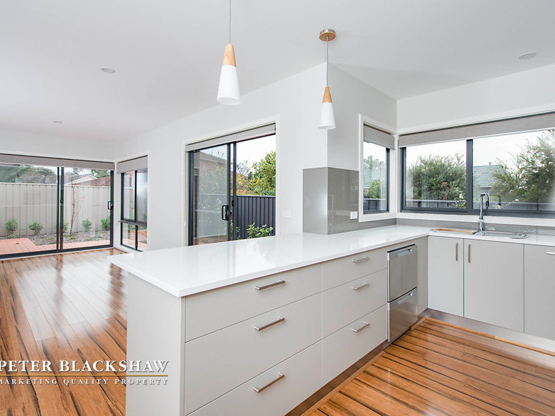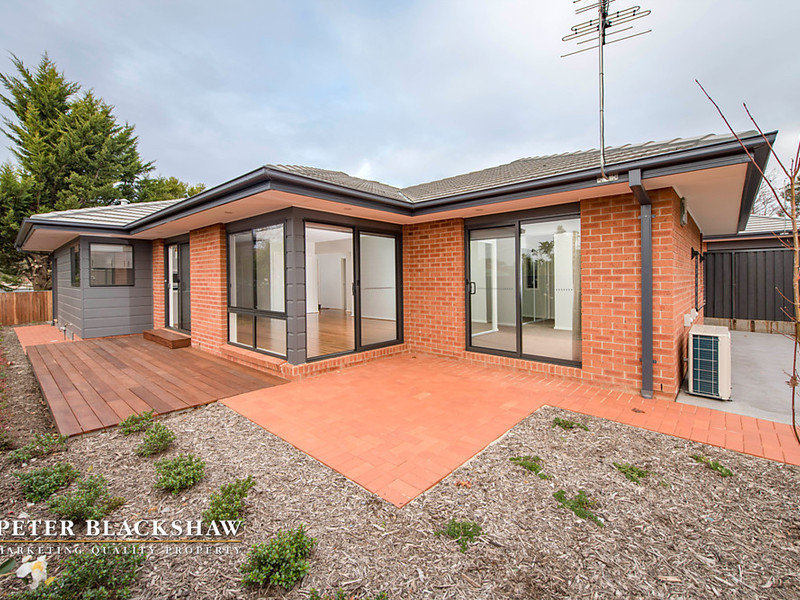 Nestled in a quiet cul- de- sac within a sought after pocket of Curtin is this stunning, brand new, single level separate title dual occupancy. Inspired by local architect and interior designers this home is for people who appreciate warmth, flow, entertaining and modern lifestyle living. The north facing living areas which connect superbly to the large modern kitchen with stone bench tops and quality appliances. The extensive use of modern architectural lines and double glazed windows create a seamless transition from the private front entry to the rear alfresco entertaining deck and paved area which overlooks the landscaped gardens. Accommodation includes three bedrooms all with built in robes, the segregated master with modern ensuite. Other features include reverse cycle heat / cool, modern bathroom, quality appliances and large single garage with internal access. Easy care landscaped gardens surround the home. Tastefully decorated throughout with modern fittings, fixtures and colours. Stroll to local shops and parkland and a short drive to Woden and Canberra city centres. A unique offering ready for to just move in and enjoy.