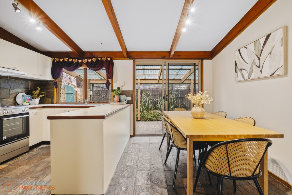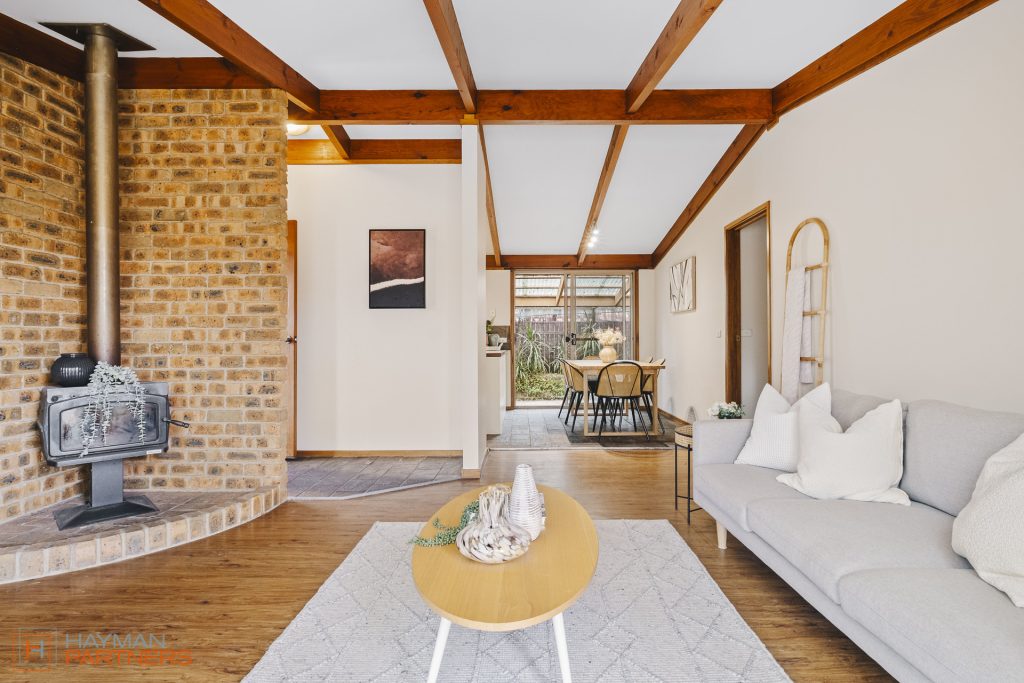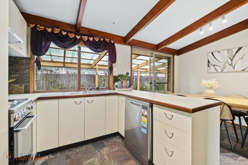 Positioned beside a nature reserve with a little playground, this home is ideal for those seeking a peaceful family home. Step inside to be welcomed to a cosy lounge room that opens into the dinning and kitchen area. The kitchen has been equipped with brand new appliances and features plenty of storage. From the kitchen you have a welcoming outlook towards the nature reserve. The entire living and dining room is elevated by the high-pitched roof and exposed timber beams.