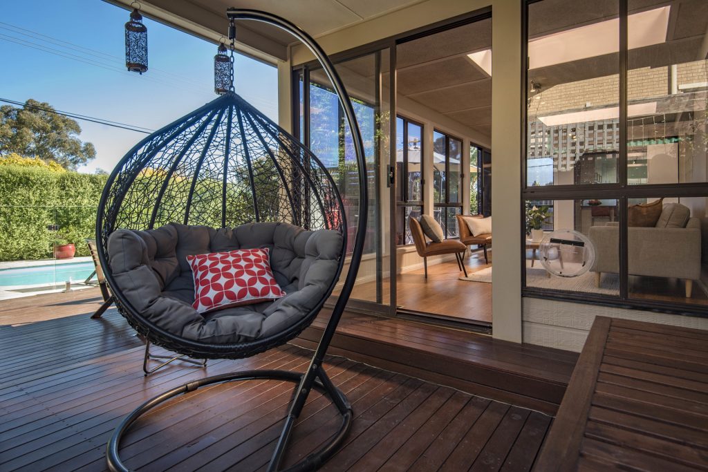 • 8 metre salt water pool surrounded by travertine pavers and glass pool fencing