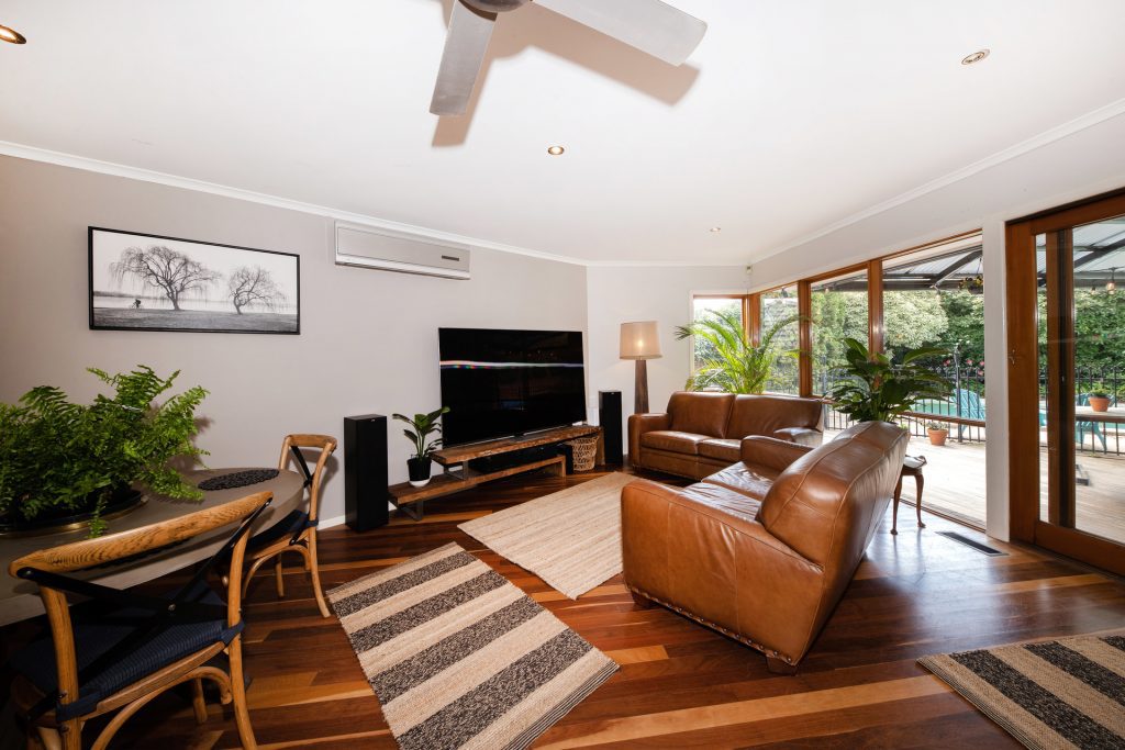 – North-facing covered private entertaining deck overlooking 12m saltwater pool