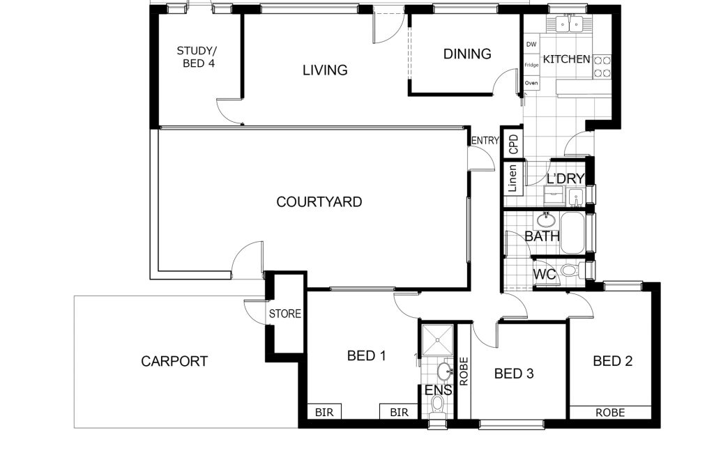 Three bedrooms with built-in wardrobes plus 4th bedroom or study