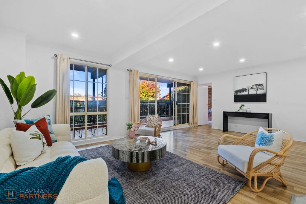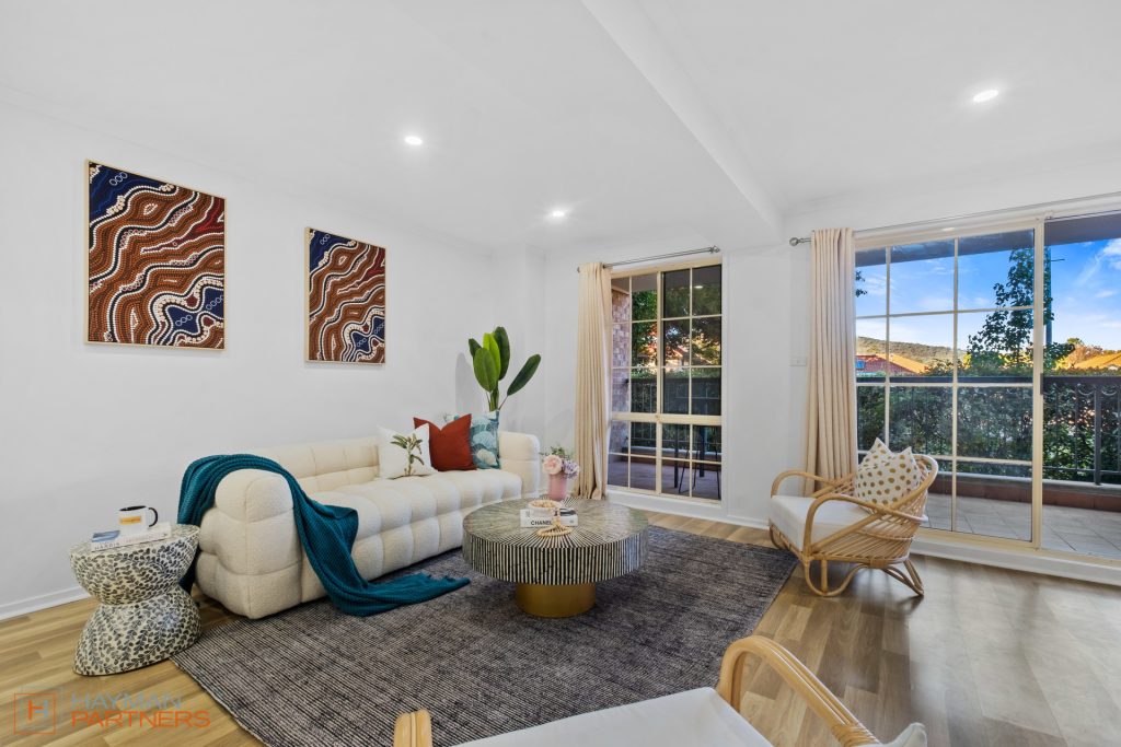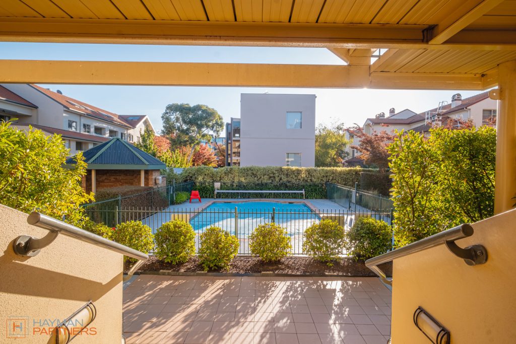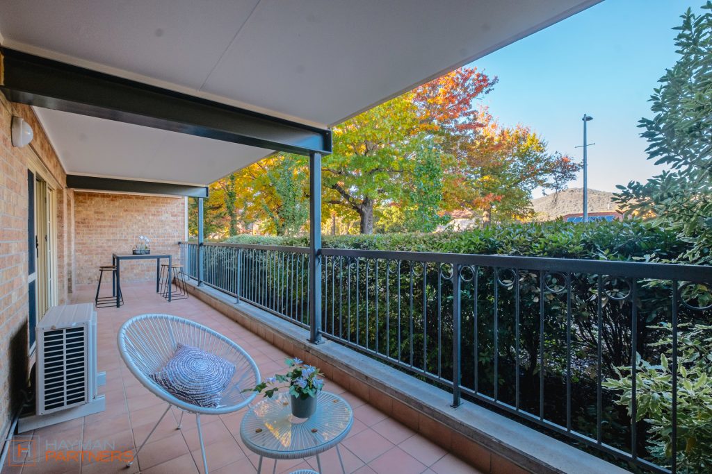 – Large 22m² balcony that takes in leafy green views of Mt Ainslie