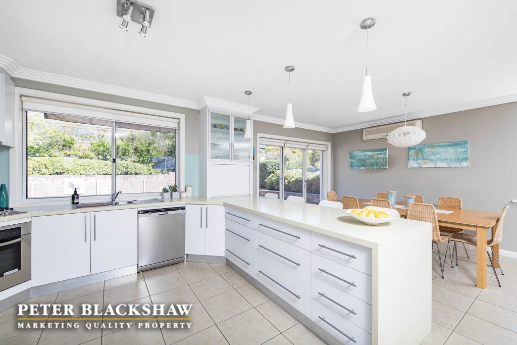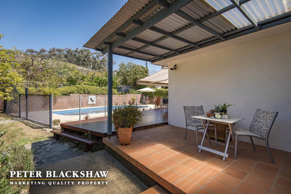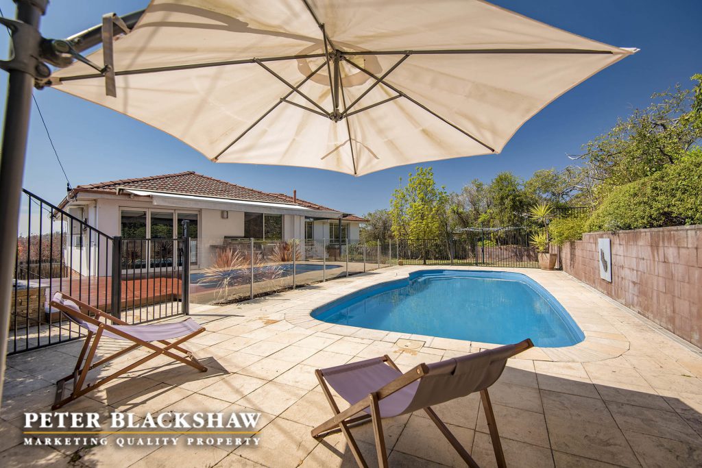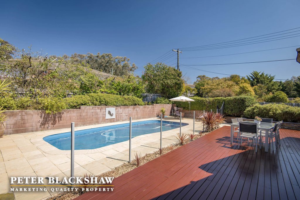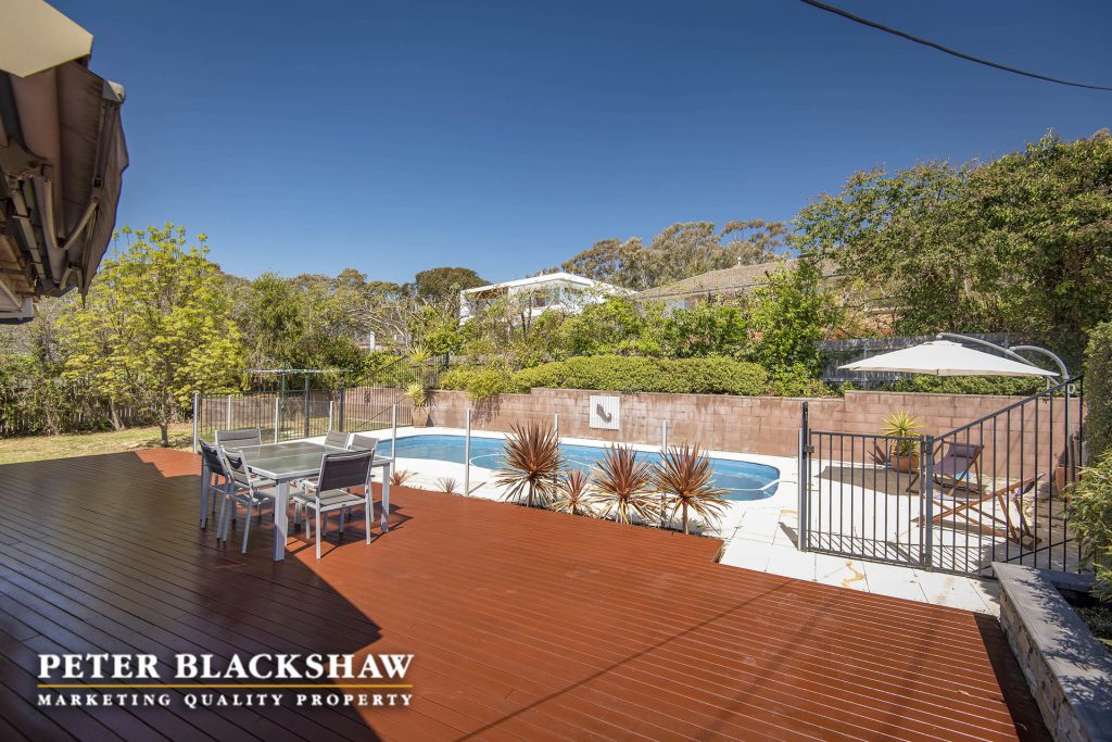 Nestled in a tightly held loop street on a superb elevated block, is a home with stunning North East views towards Canberra City and beyond. Boasting a feeling of space, flow and natural light throughout the living areas including the spacious sun filled formal lounge and dining areas. The huge family / meals area flows to the modern open plan kitchen. Accommodation is provided by four bedrooms, the master with ensuite. Established gardens surround the huge outdoor entertaining deck which overlooks the in-ground pool. The kitchen, meals area and deck look straight onto to the pool which is ideal for keeping the eye on the kids while entertaining. The front of the home boasts a fantastic outlook across Woden Valley to Red Hill, Black Mountain and the sparkling city lights. A very rare opportunity! Features Include: Elevated position