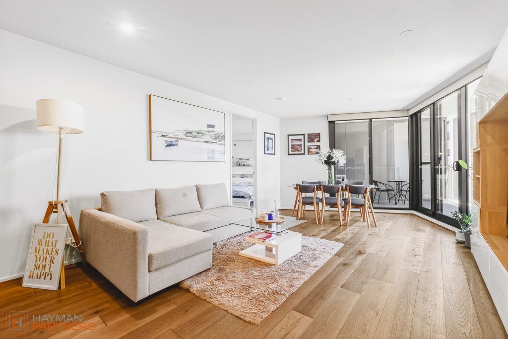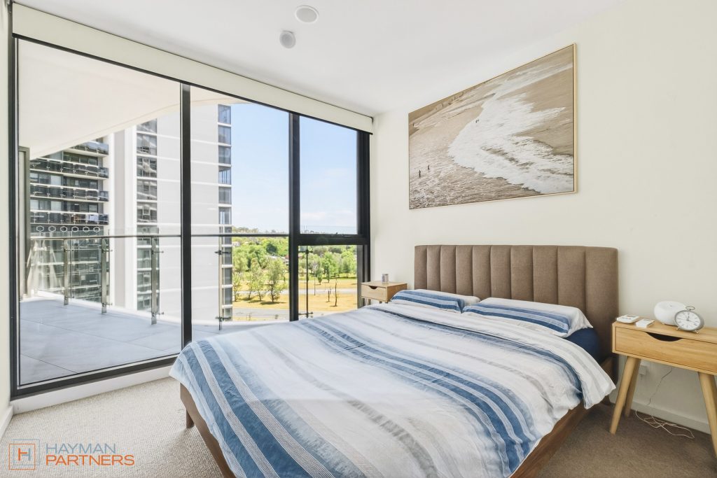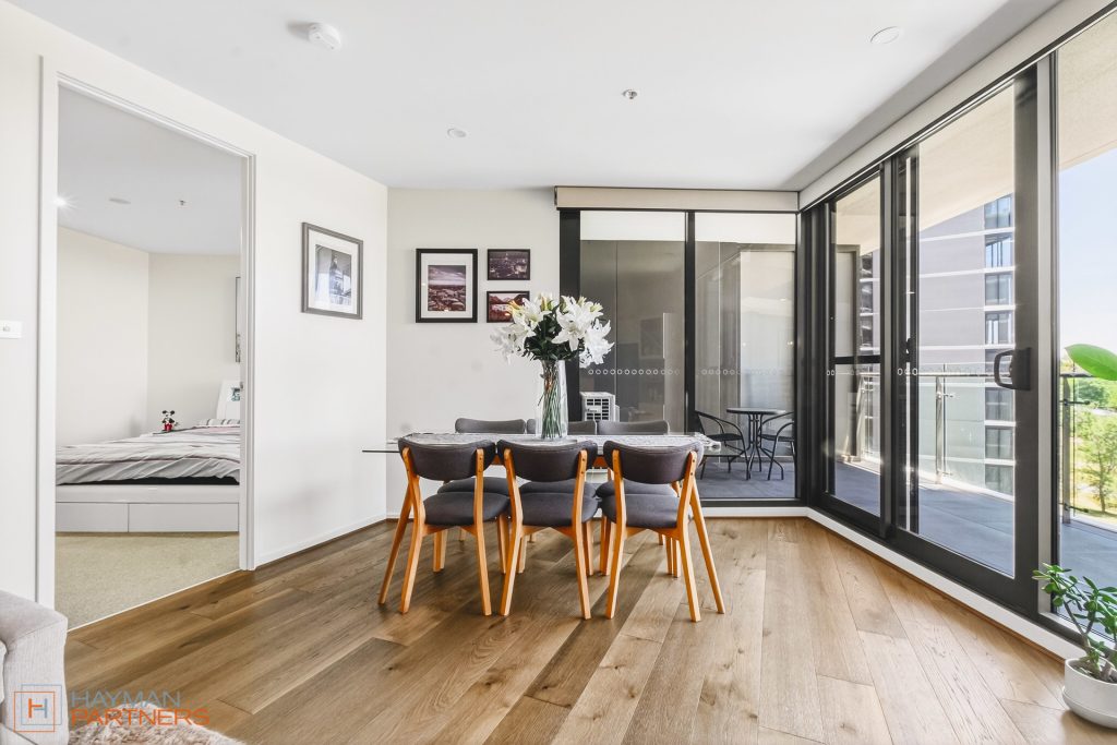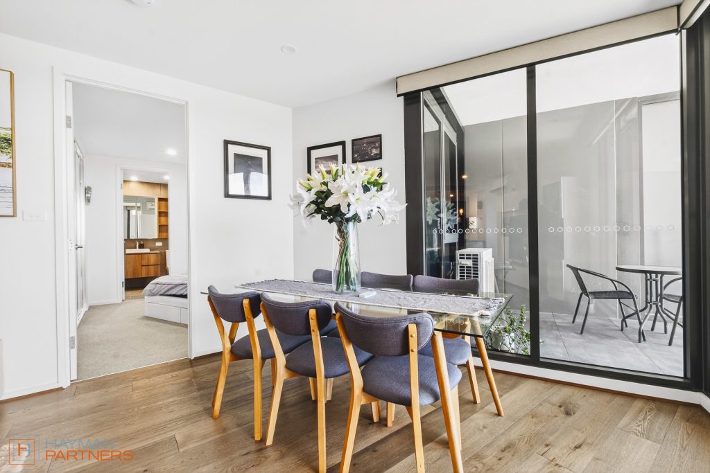 The living space consists of an open plan design, combining the dining & living room into a comfortable setting. Complimenting the space is the engineered timber flooring & the floor to ceiling windows looking into the balcony. From the balcony, you have north facing views towards the complex pool & also the green treetops of Curtin.