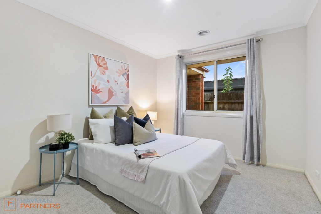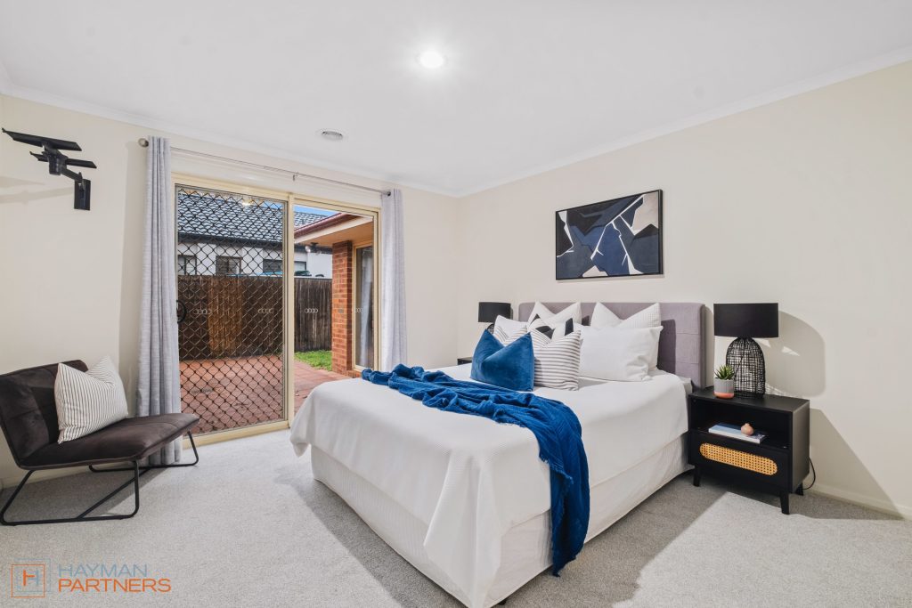 The bedroom wing is thoughtfully separated from the living zones, offering peace and privacy. All three bedrooms are generously proportioned, with the master suite boasting a walk-in robe, private ensuite, and direct access to the courtyard – creating a lovely indoor-outdoor retreat. The additional two bedrooms are serviced by a well-appointed main bathroom, separate toilet, and a full laundry with external access.