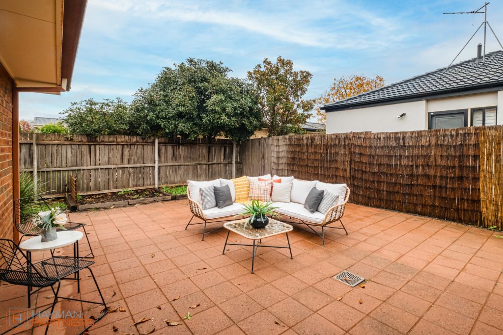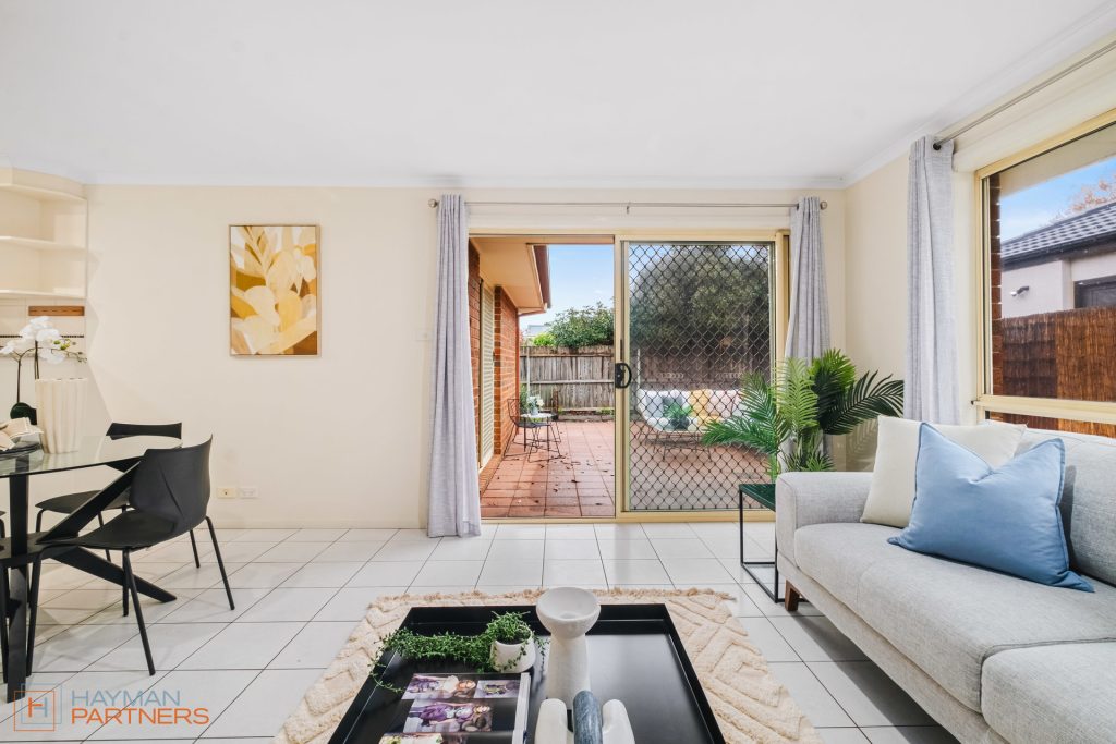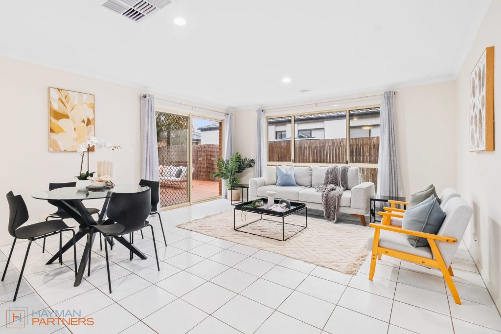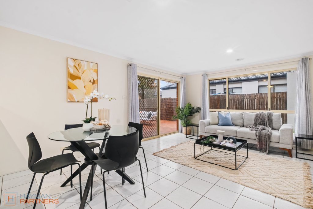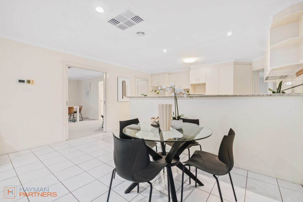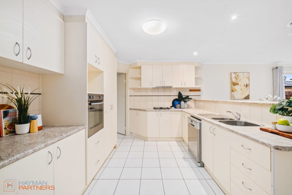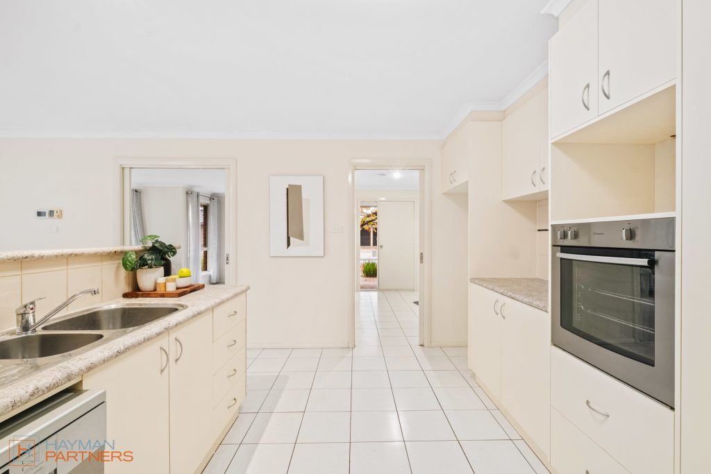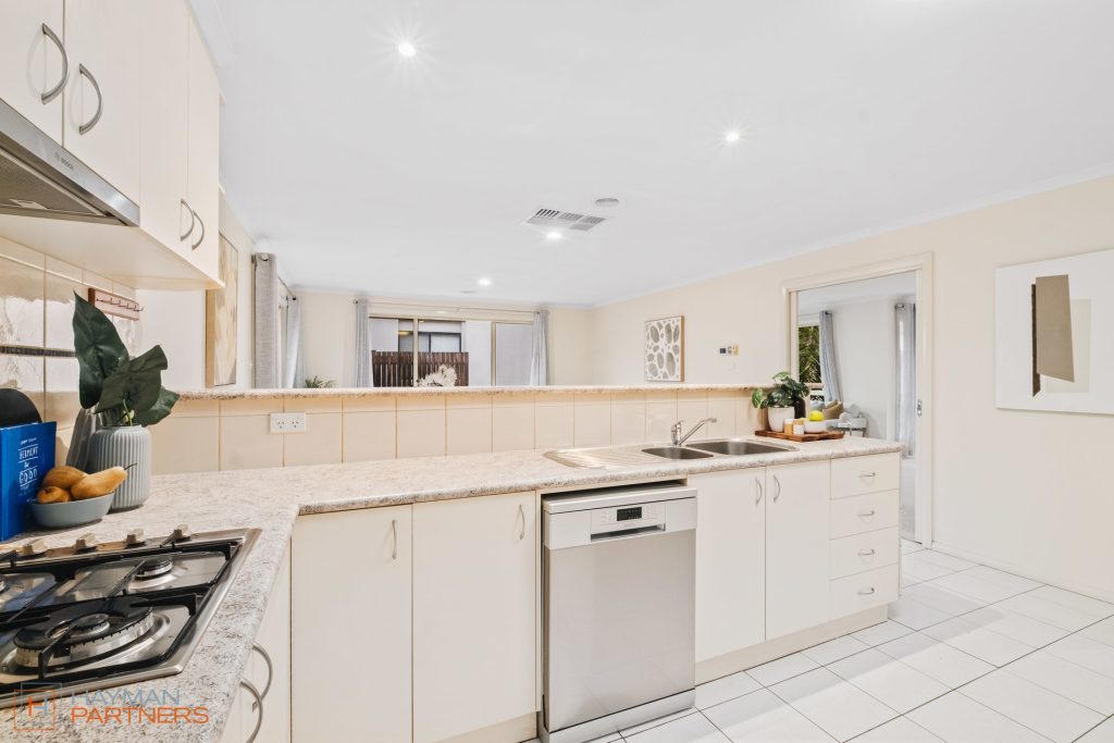 The main open-plan lounge and dining area features a spacious layout filled with natural light, seamlessly flowing into a second family/living area that connects to the stylish kitchen. The kitchen is the heart of the home, well-equipped with ample storage and bench space, and conveniently opens out through sliding glass doors to a private rear courtyard – ideal for relaxing, gardening, or outdoor dining.