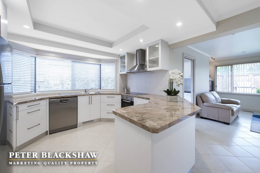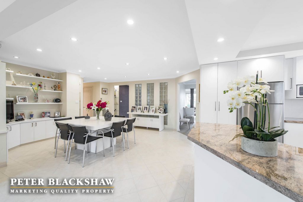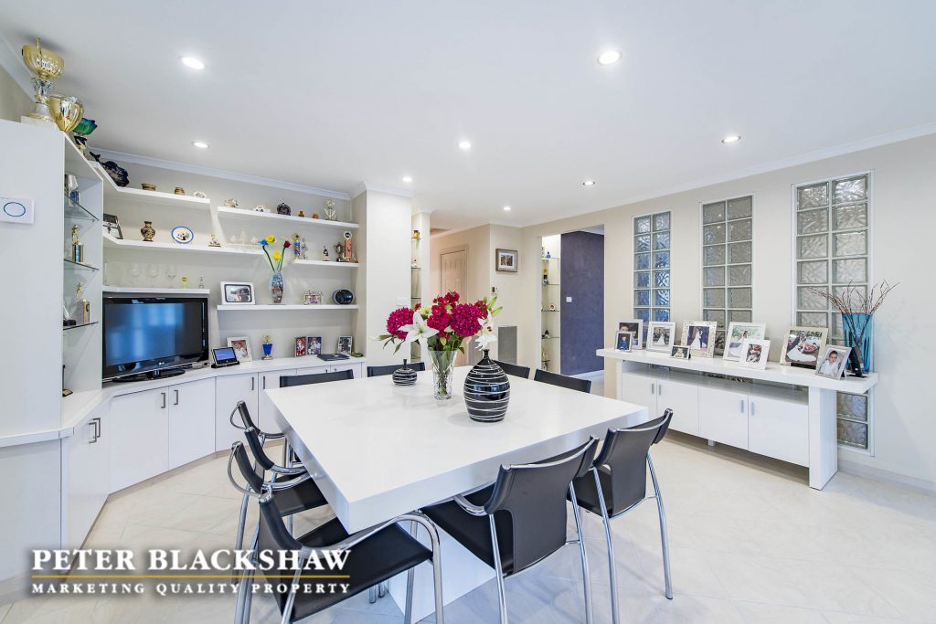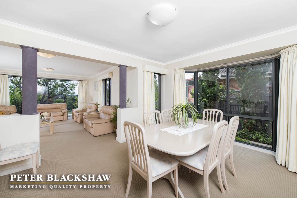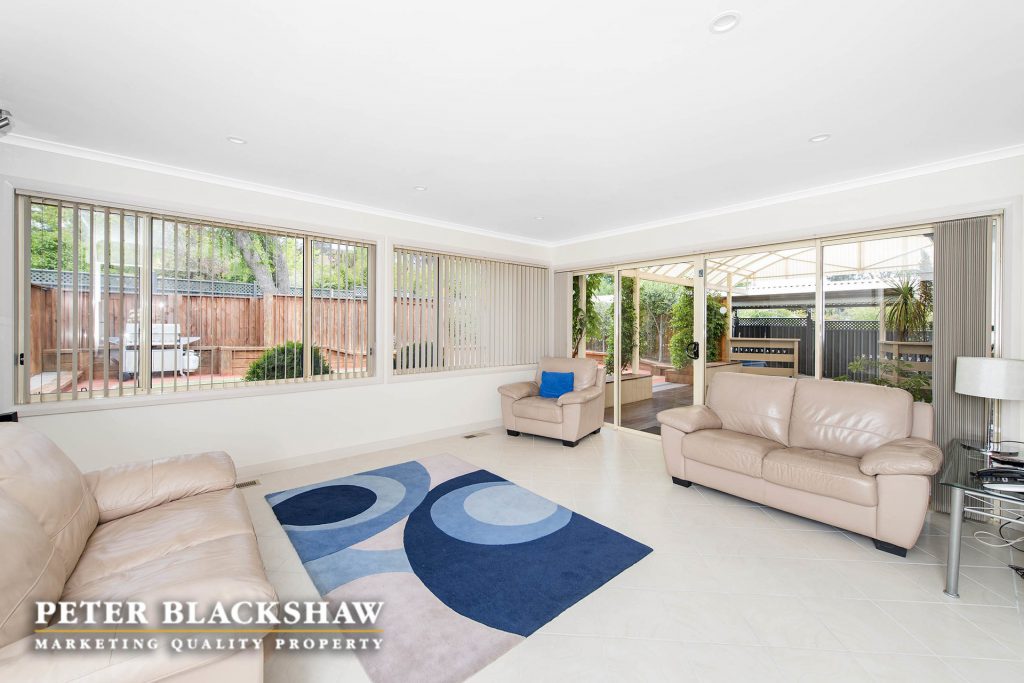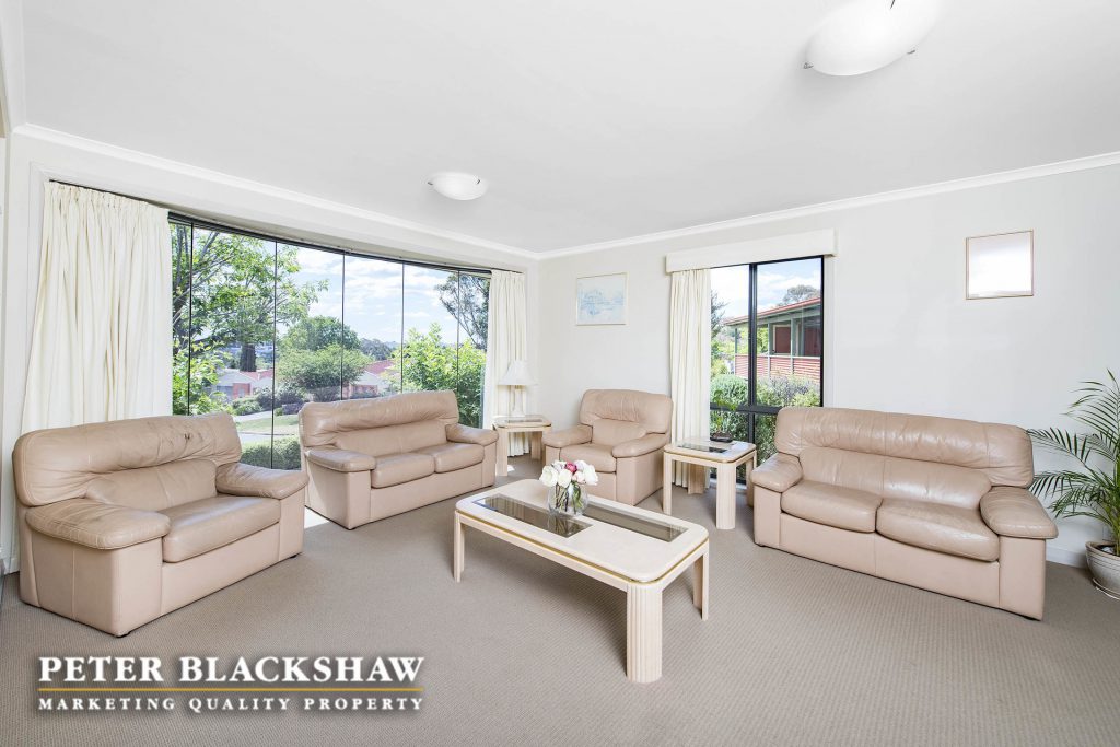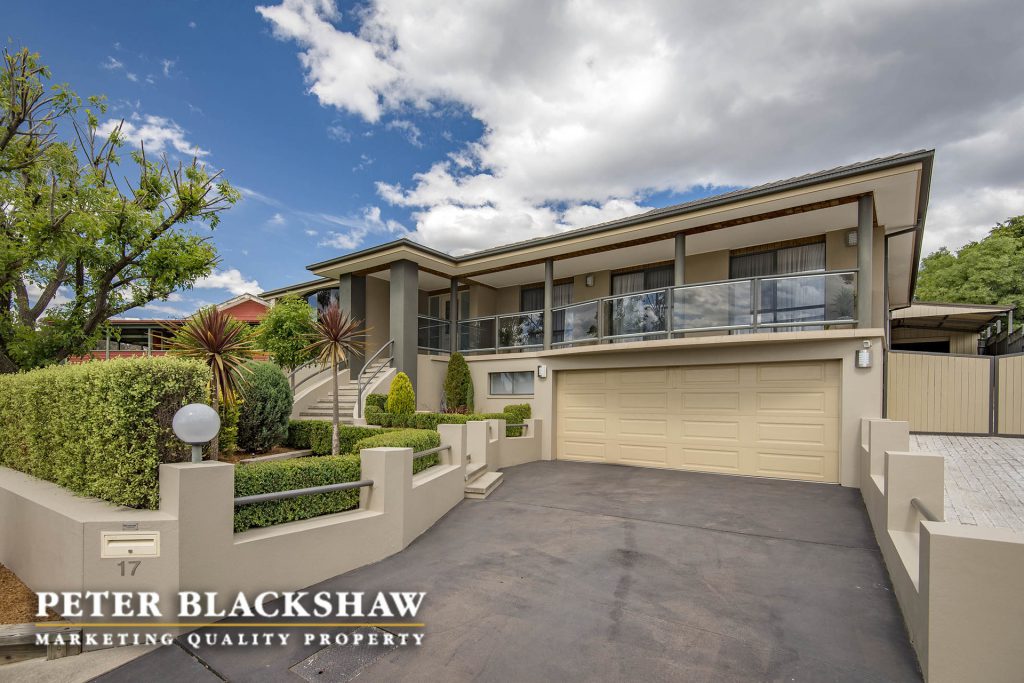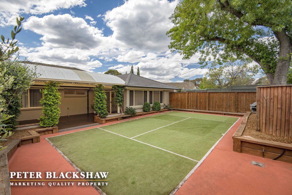 Step inside and be surprised. This immaculately presented family home is set in an elevated position on an easy care 841m2 block. The design, offering a number of both indoor and outdoor living areas to suit most families, makes this home a rare find. The indoor living areas include sun drenched formal lounge and dining, featuring full length custom windows that allows you to overlook Woden, The Brindabella Mountain range and beyond. A large meals area and an immense open plan family room connects seamlessly with the updated kitchen and covered outdoor entertaining deck. Enjoy the morning coffee on the front patio or entertain all your family and friends on the large covered timber deck which ideal for all seasons. Accommodation is provide by four bedrooms plus a study, the master with modern ensuite and walk-in wardrobe, all other bedrooms have built-in wardrobes. Low maintenance is the principal with synthetic grass playing area at the rear and easy care gardens at the front of the home. The garaging and storage is ideal for the collector, trades person or hobby enthusiast – oversize double garage with internal access and home office, side access to another double garage, workshop and double carport. There is no reason to leave your cars, boats, trailers or caravans out. A short stroll to local schools, playing fields, Woden, Mawson, Swinger Hill shopping precincts and only minutes to Canberra Hospital. Don’t miss this outstanding opportunity. Features include: Elevated position