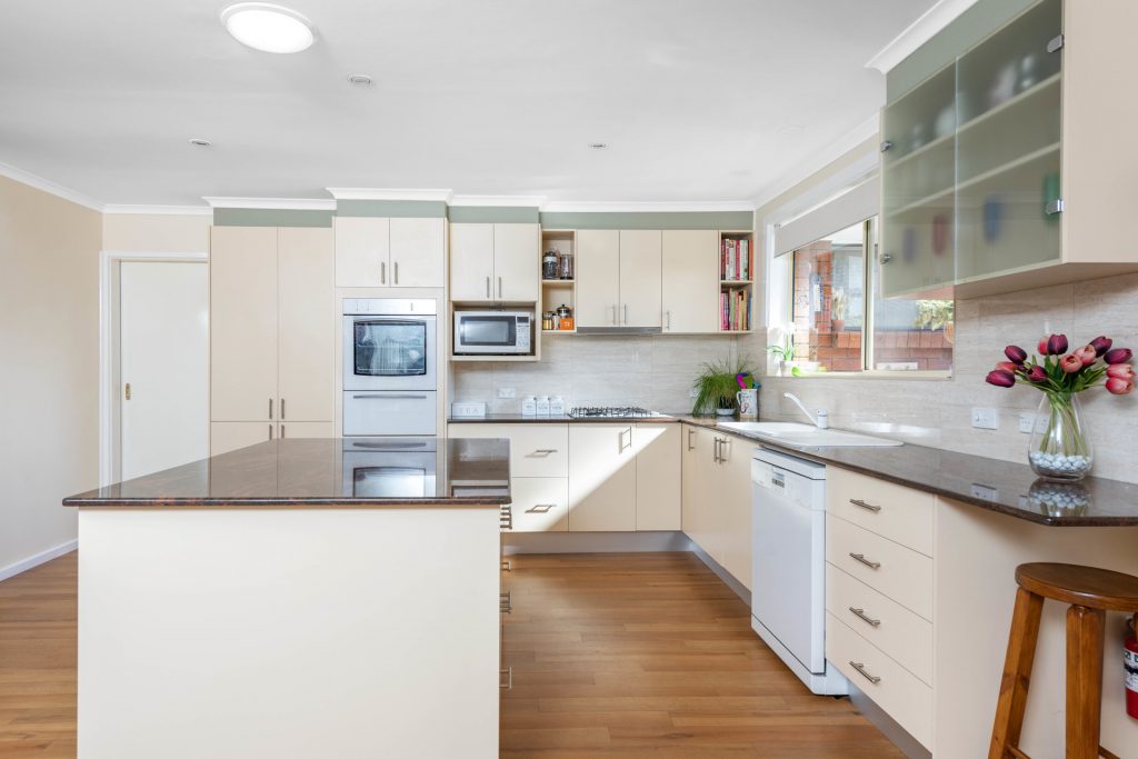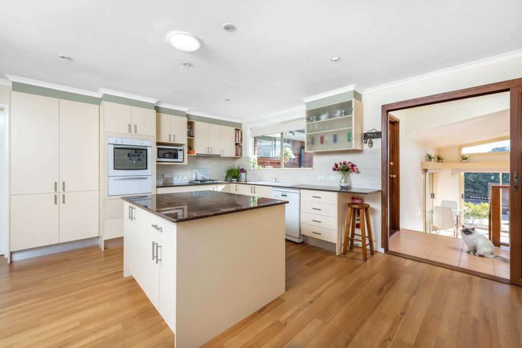 * Huge kitchen with island bench, quality appliances, granite bench tops & adjoining casual meals area