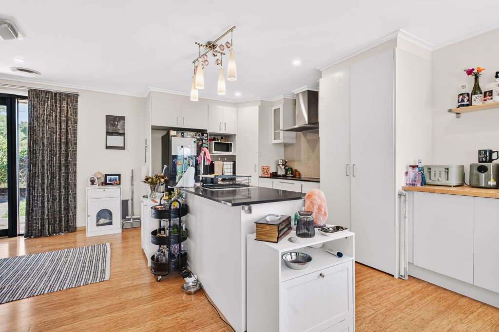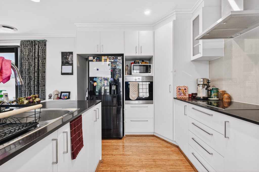 – Entertainer’s kitchen with large island bench, extensive storage and quality appliances