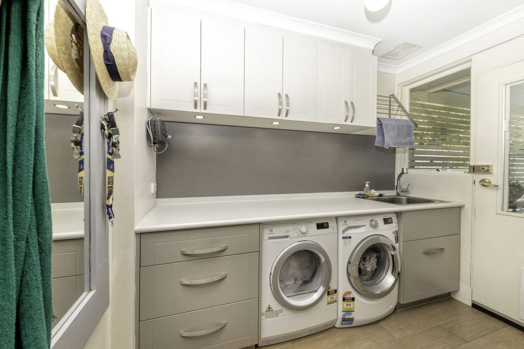 The home is spacious, airy, and filled with natural light. The living areas and bedrooms all overlook the well-established and leafy surrounds whilst instilling a feeling of openness and space. The kitchen is the heart of the home and features easy care Italian porcelain tiles, solid Tasmanian oak build, island bench for additional storage and bench space, stainless steel appliances including dishwasher, all while overlooking the pool and back yard to keep an eye on the outdoor activities.