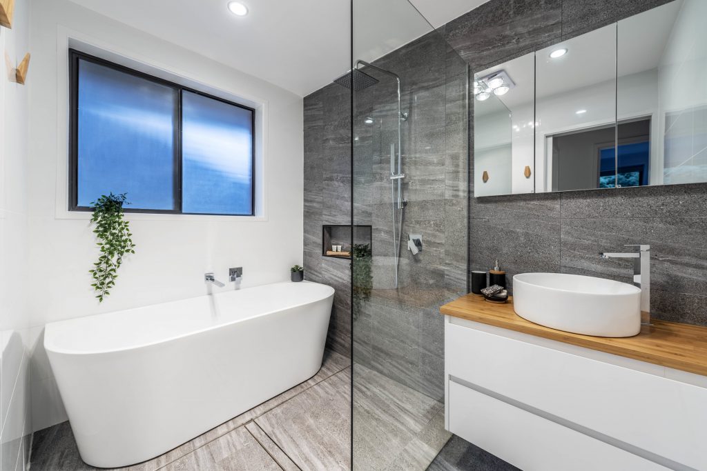 – Resort style main bathroom with free-standing bath and walk-in shower